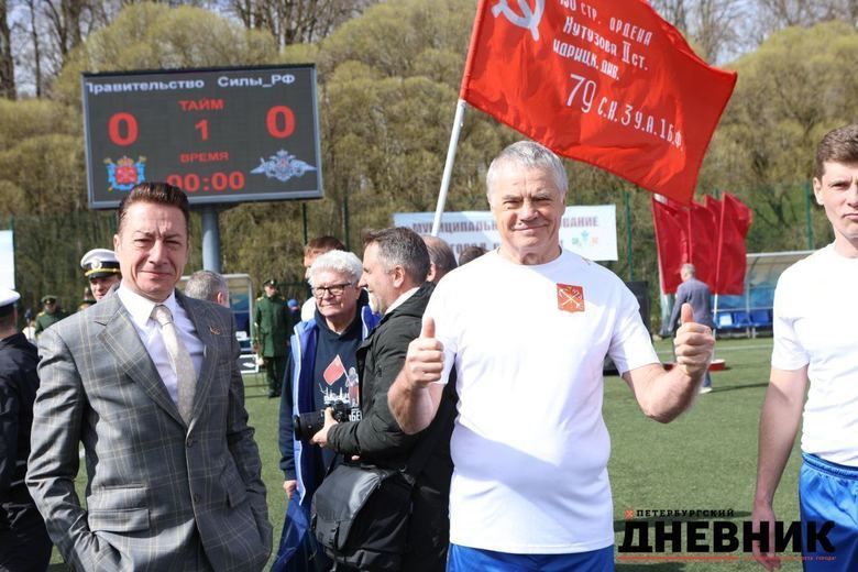 В Сестрорецке в честь 80-летия Великой Победы сыграли в футбол члены правительства и генералы