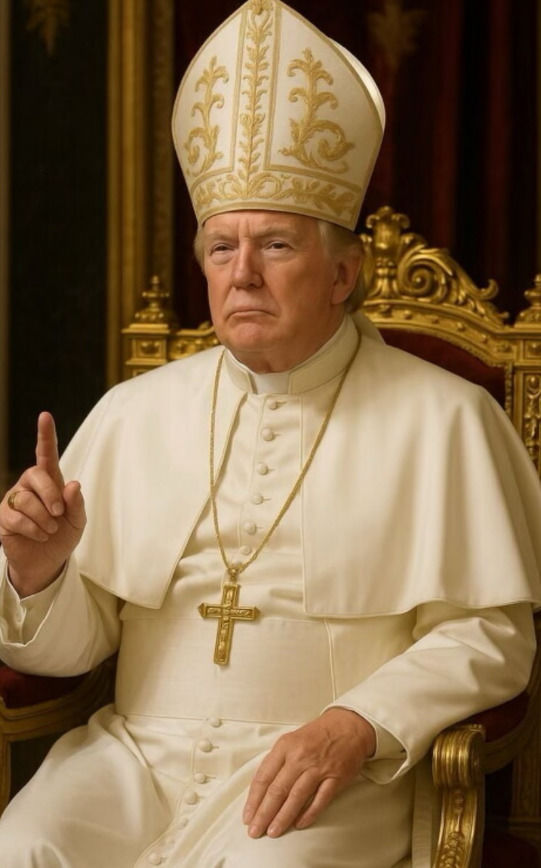 Американский президент Дональд Трамп опубликовал в соцсетях свою фотографию, сгенерированную нейросетью, где он сидит на позолоченном троне в облачении папы римского – в белой сутане, с митрой на голове и большим крестом на груди, передает ura.ru.