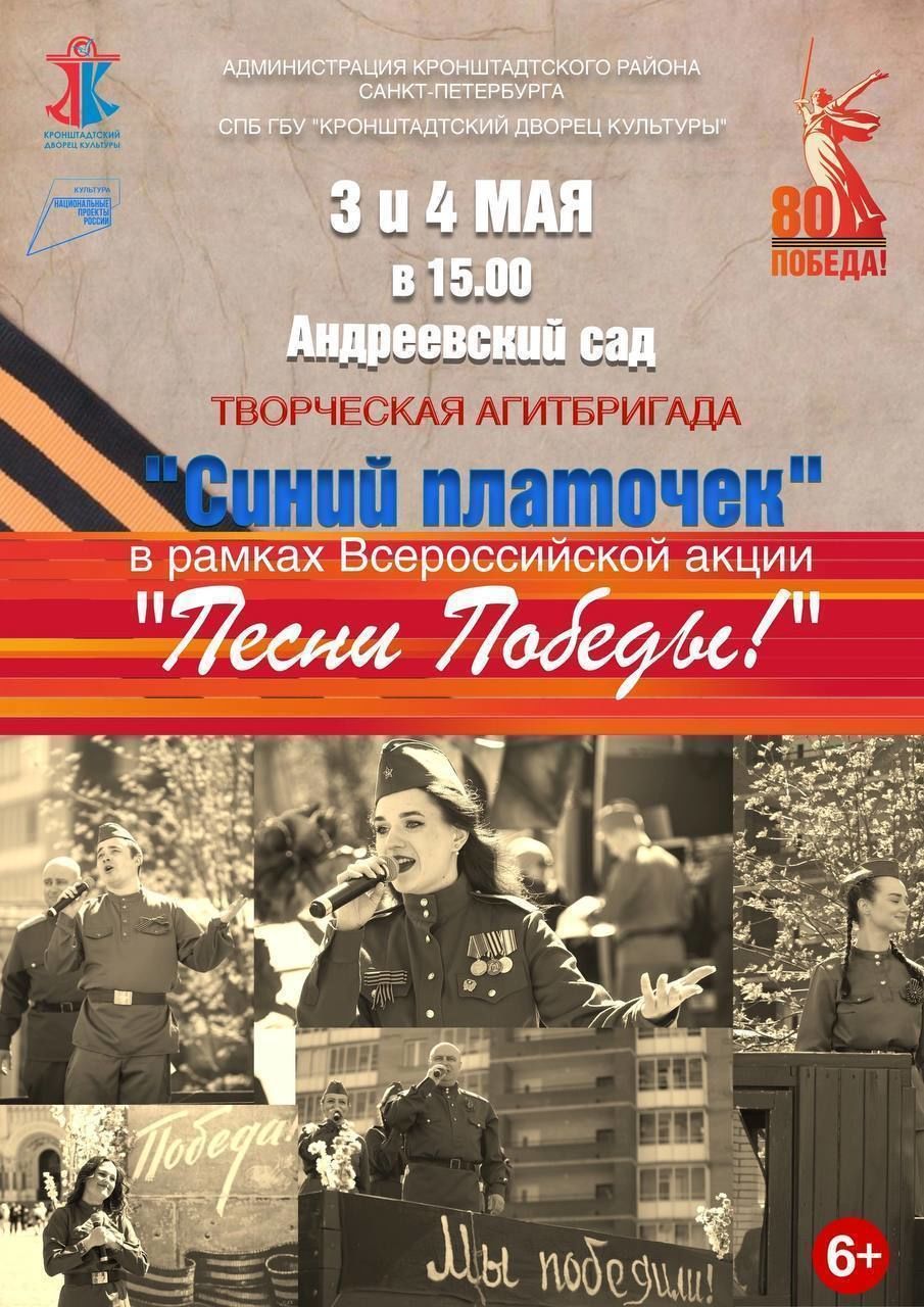 Глава администрации Кронштадтского района Андрей Кононов пригласил всех желающих на творческую агитбригаду «Синий платочек» в рамках всероссийской акции «Песни Победы!».