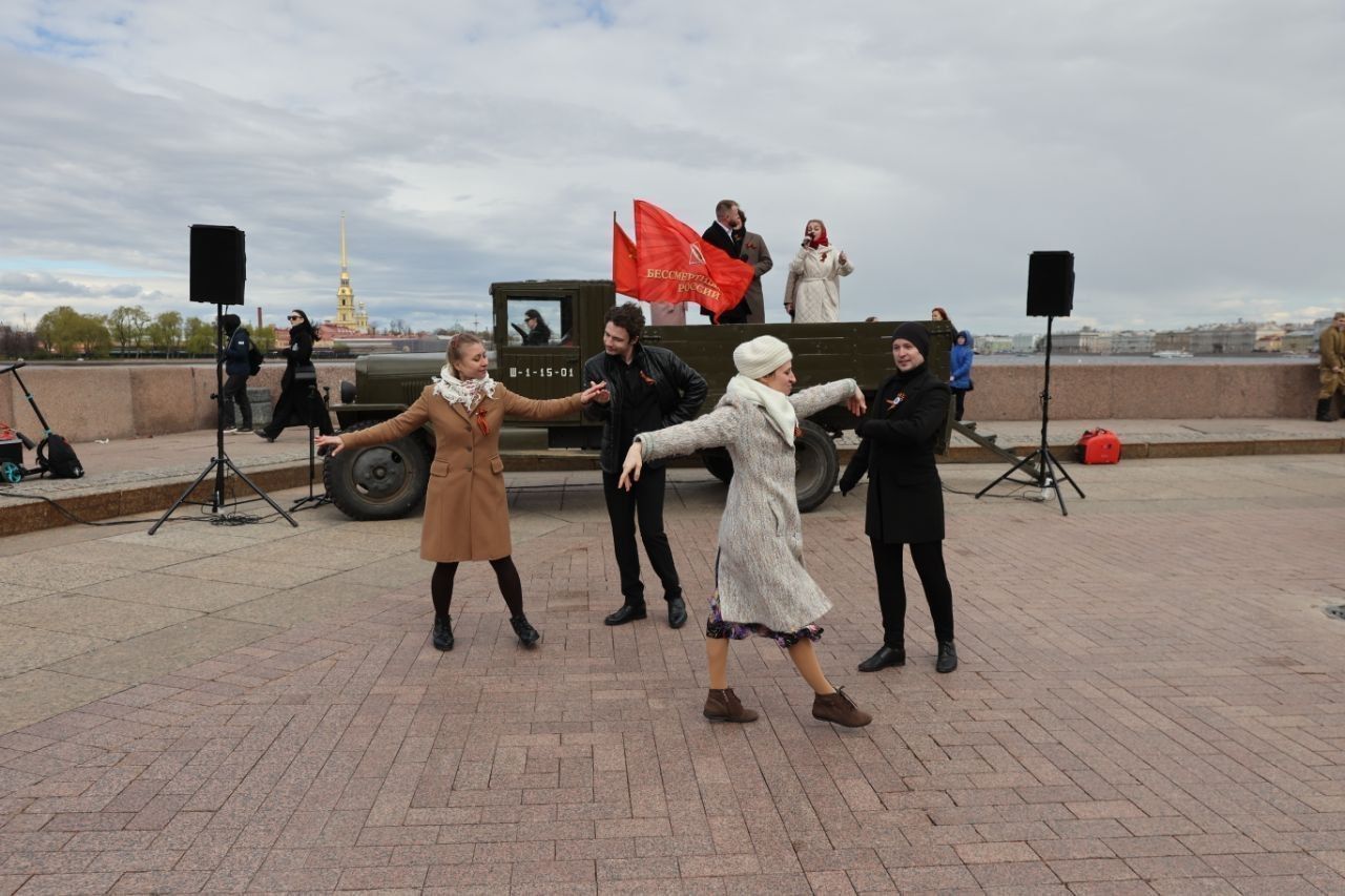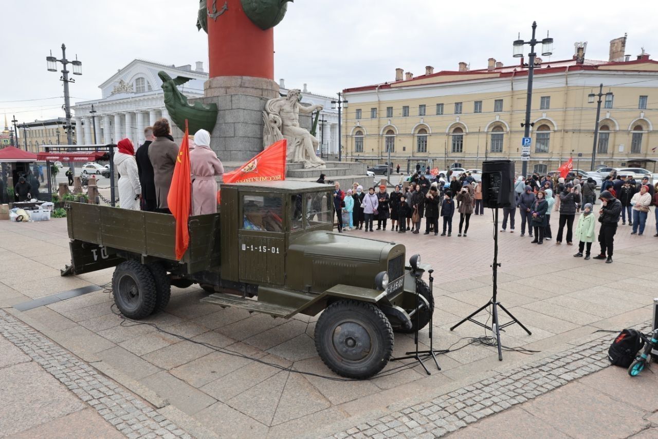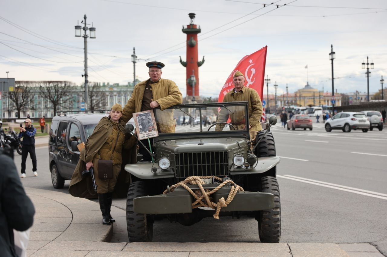 Стартовав от Московского шоссе, колонна остановилась у Монумента героическим защитникам Ленинграда. Завершился пробег на стрелке Васильевского острова, где сейчас проходит торжественная музыкальная программа.