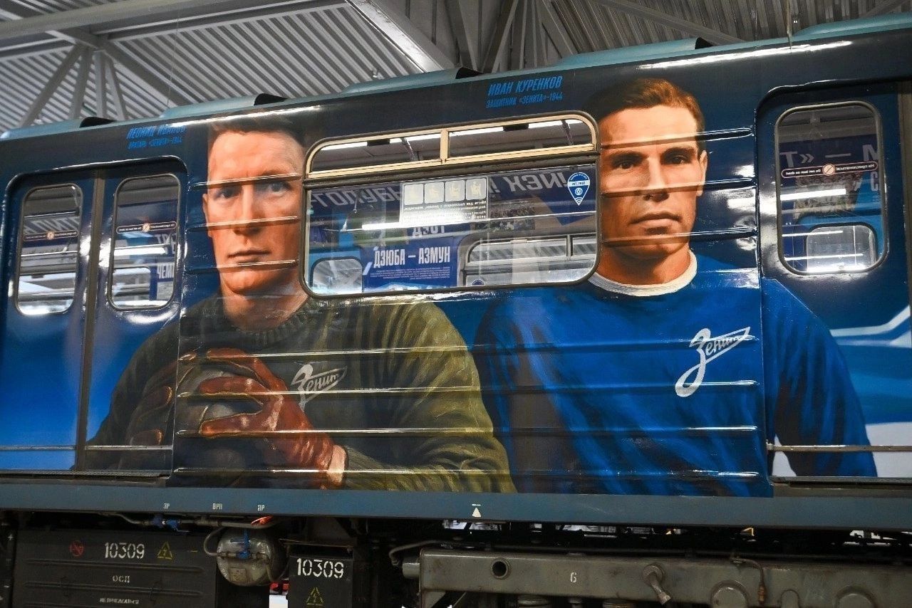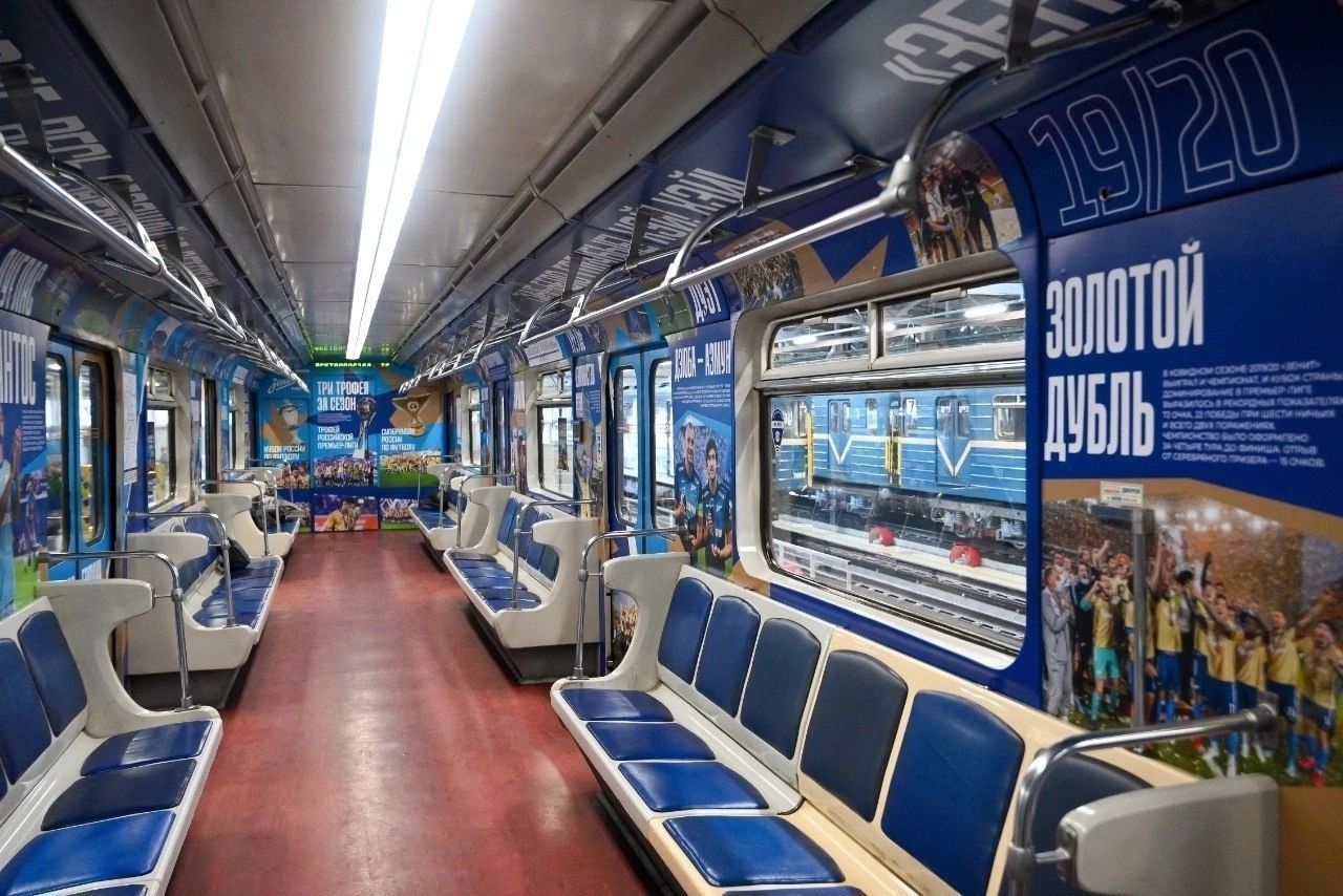 По синей ветке метрополитена пустили брендированный поезд в честь 100-летия «Зенита»