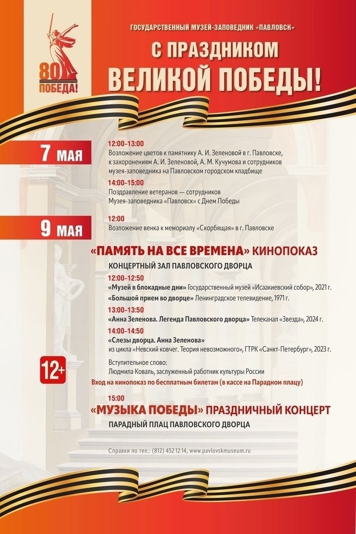 Музей-заповедник «Павловск» приглашает отметить 80-летие Победы в Великой Отечественной войне.