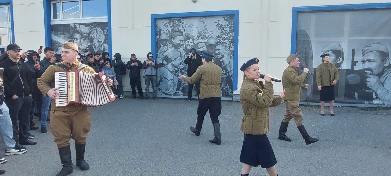 В Московском районе Петербурга 5 мая, на площадке миграционного центра «Южный», состоялось торжественное мероприятие для гостей нашего города в память о героизме и мужестве советского народа «Один народ – одна Победа». Его подготовили Комитет по внешним связям Смольного совместно с патриотическим объединением «Ленрезерв» и Ассоциацией содействия международной трудовой миграции. Несколько часов над Кубинской улицей звучали песни военных лет, а трудовые мигранты пели и плясали вместе с артистами из «фронтовой бригады», с удовольствием вспоминая слова любимых с детства советских песен. При этом любой желающий мог познакомиться со старинными автомобилями – экспонатами из коллекции патриотического объединения «Ленрезерв», а также отведать кашу и плов из полевой кухни.