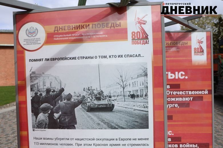 Национальный центр исторической памяти при президенте РФ совместно с Санкт-Петербургским региональным отделением общественного движения «Бессмертный полк России» проведут уличную выставку, приуроченную к 80‑летию Великой Победы. Проект «Дневники Победы» будет работать с 5 по 16 мая на территории Петропавловской крепости. Он расскажет о том, как Красная армия освобождала Европу от нацизма.