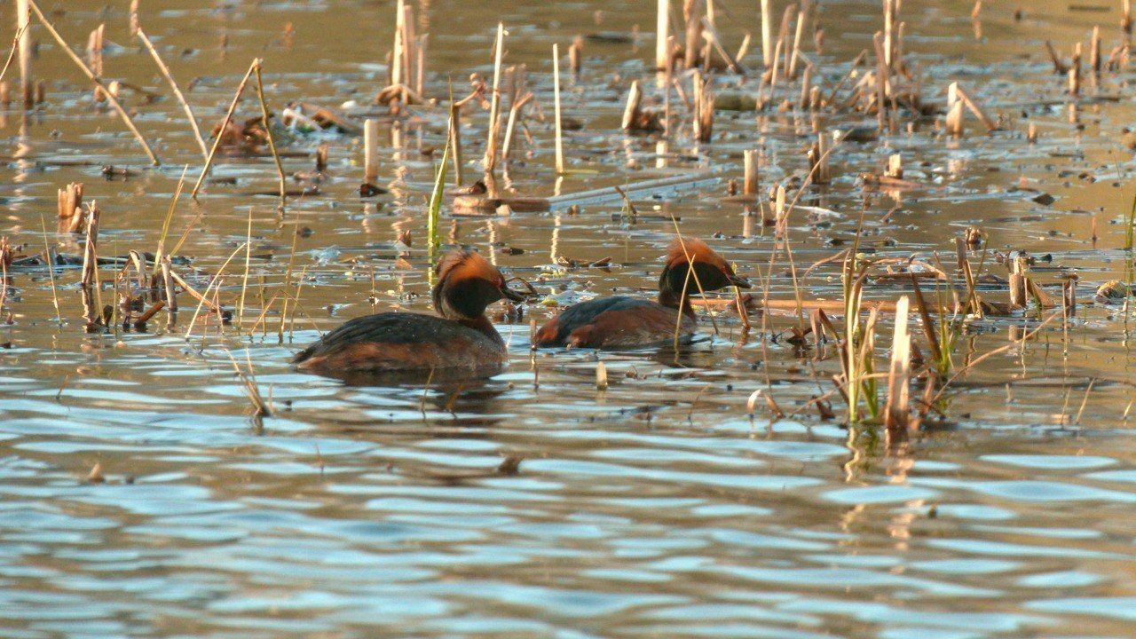 «Весной на голове у них появляются перья в виде раздвоенного хохолка – своеобразные золотистые «рожки». Поганки образуют стабильные пары на весь сезон размножения. Сейчас основная задача у пары – найти на пруду подходящее место для гнезда», – отметил Глазков.
