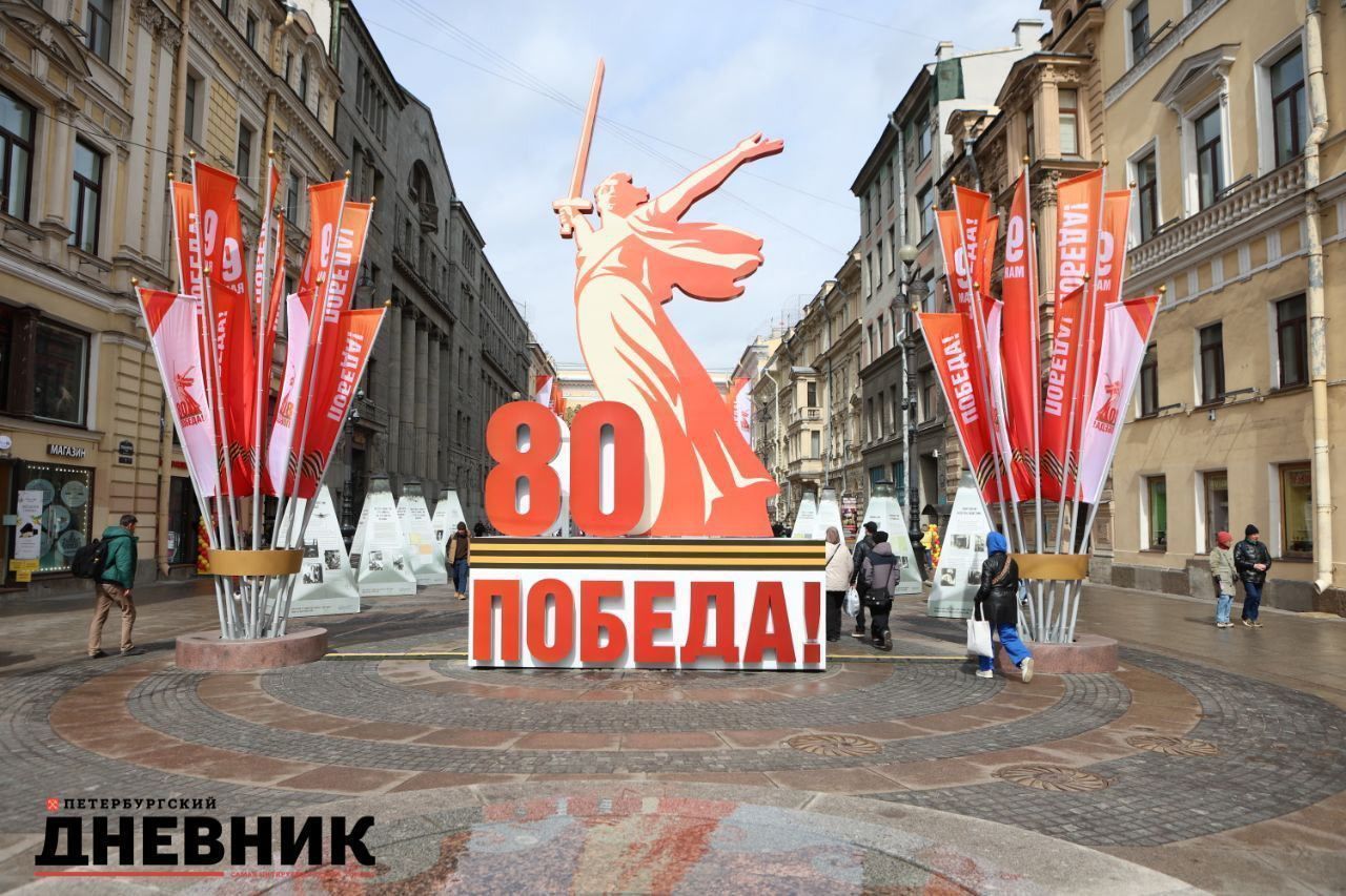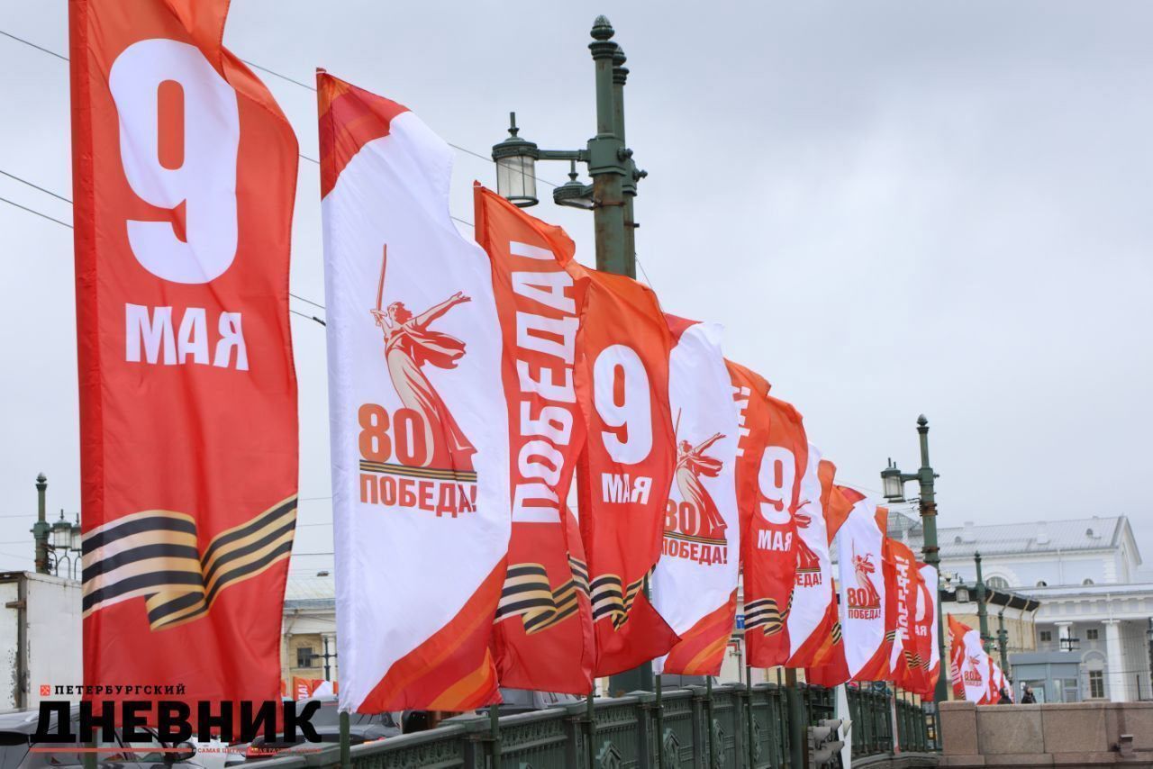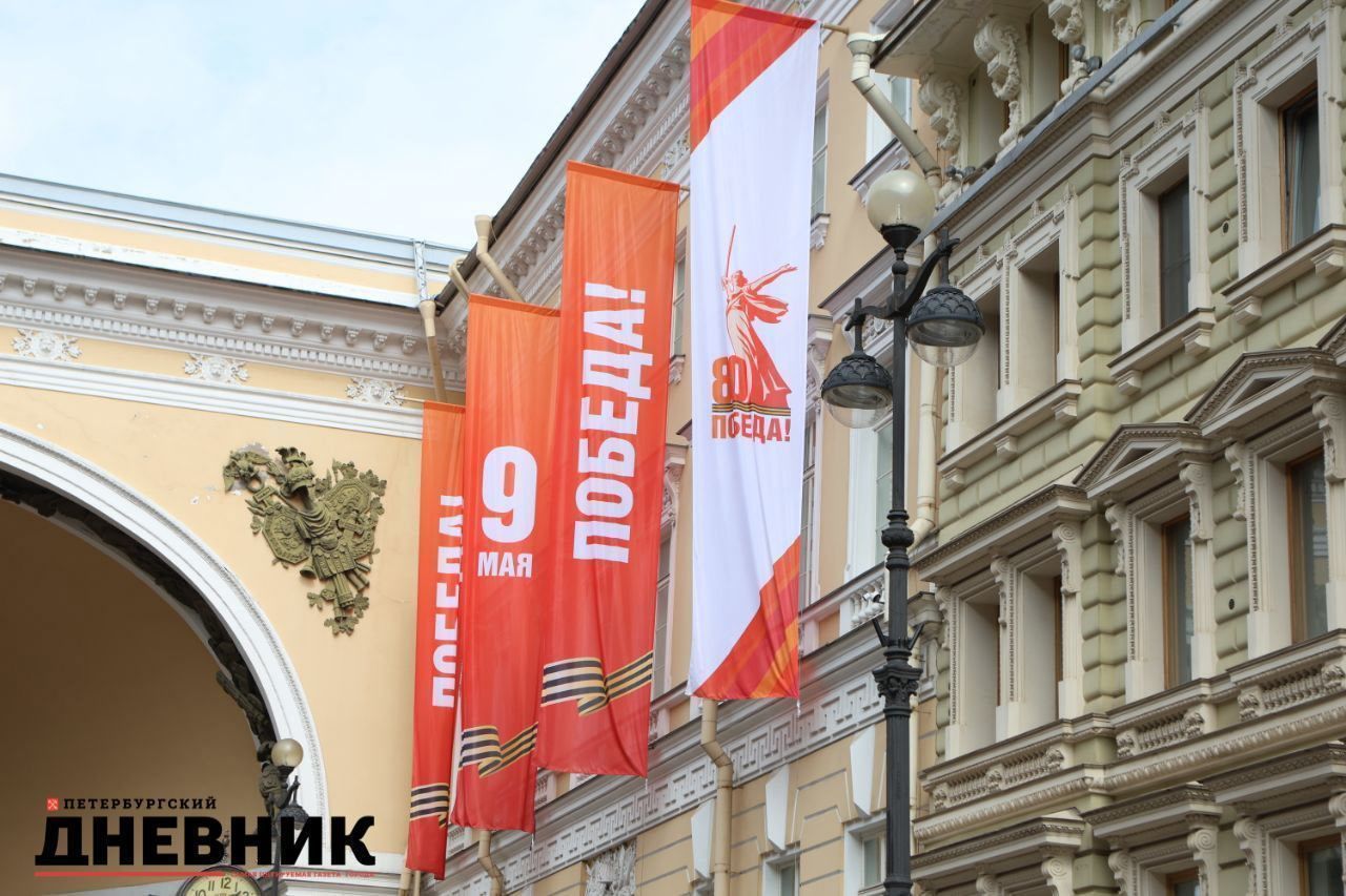 Фото: центр Петербурга украсили в преддверии Дня Победы