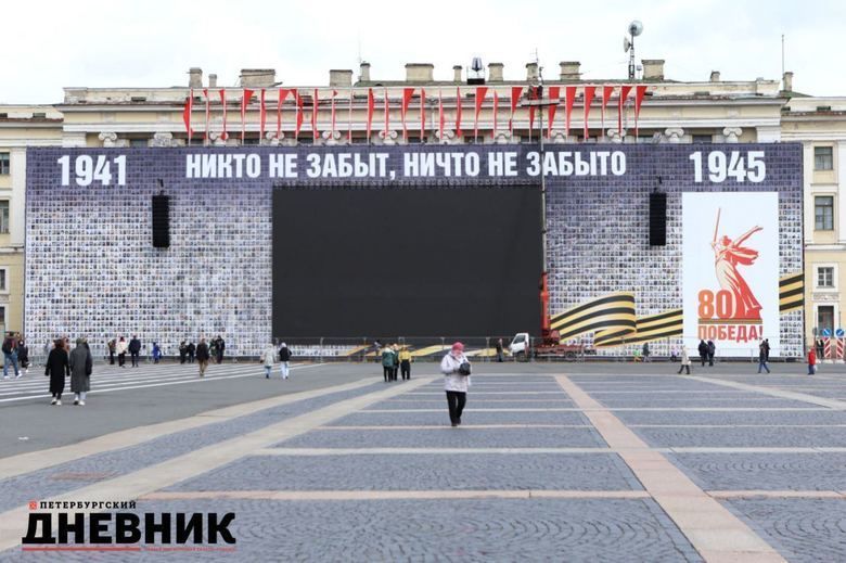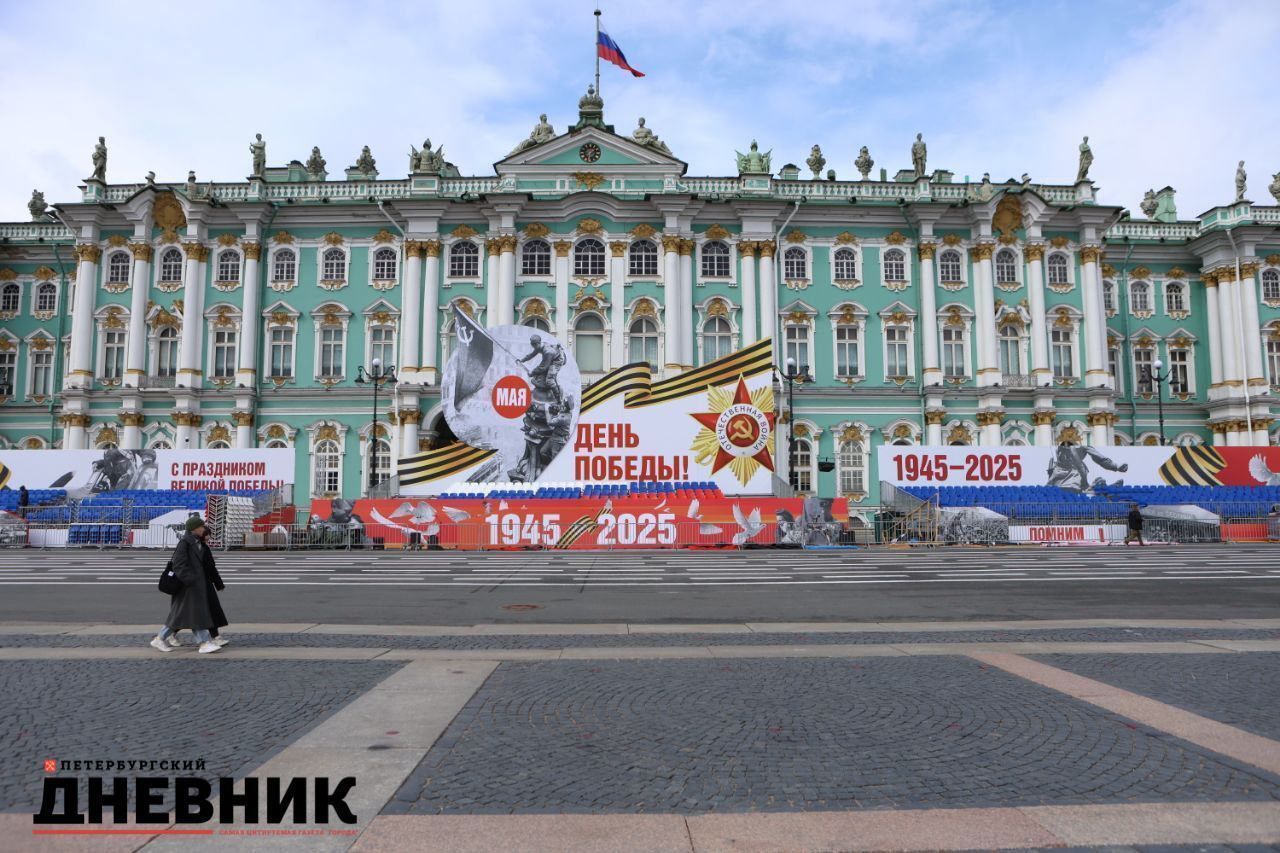 Стоит отметить, что на Дворцовой площади уже монтируют трибуны, откуда ветераны будут смотреть парад Победы.
