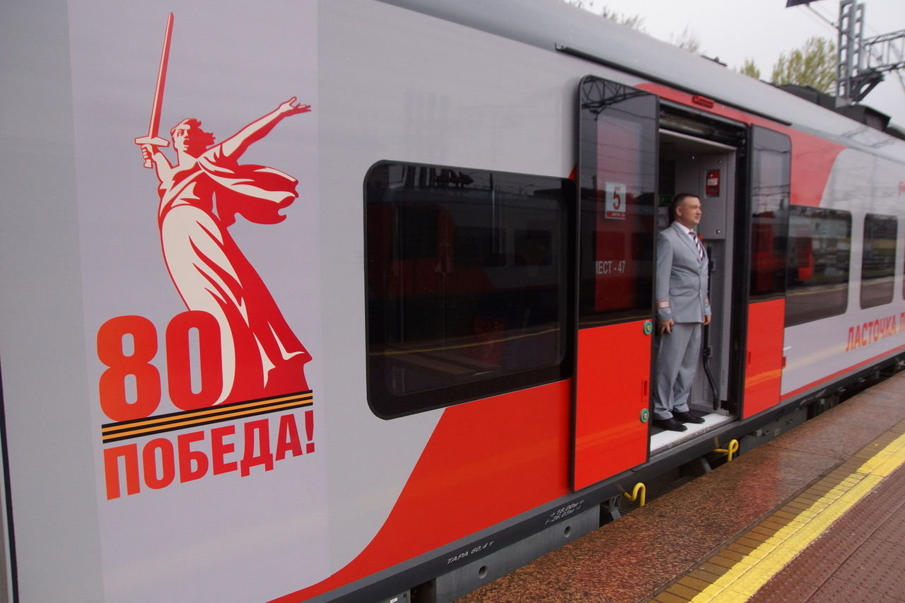 Сегодня на Финляндском вокзале в честь приближающегося 80-летия Победы в Великой Отечественной войне прошёл парад паровозов. Перед началом мероприятия Октябрьская железная дорога представила новый тематически оформленный электропоезд «Ласточка Победы», который с 9 мая начнёт курсировать по маршруту Санкт-Петербург – Москва.