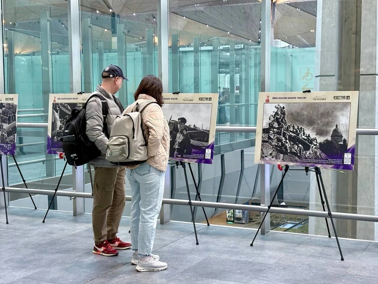 В зоне вылета внутренних рейсов аэропорта Пулково открыта выставка архивных кадров времён Великой Отечественной войны.