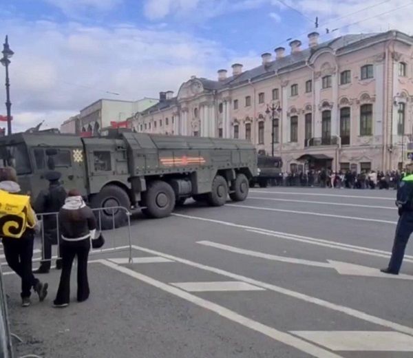 Ракетные комплексы и автомобили специального назначения проследовали по Невскому проспекту и Дворцовой площади и выстроилась на набережной Мойки.