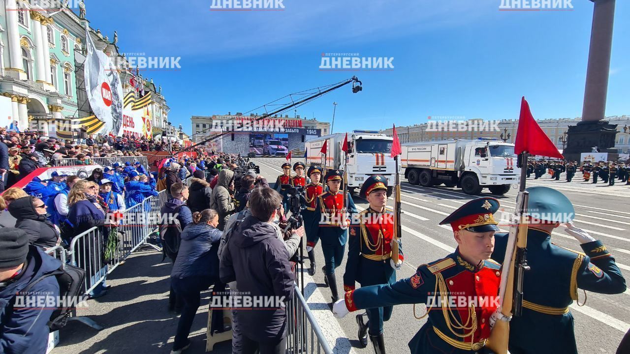 На Дворцовой площади завершился парад Победы 9 Мая. Проход колоны военных и техники запечатлел фотограф «Петербургского дневника».
