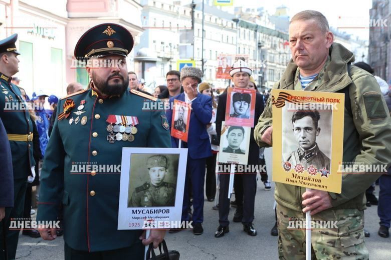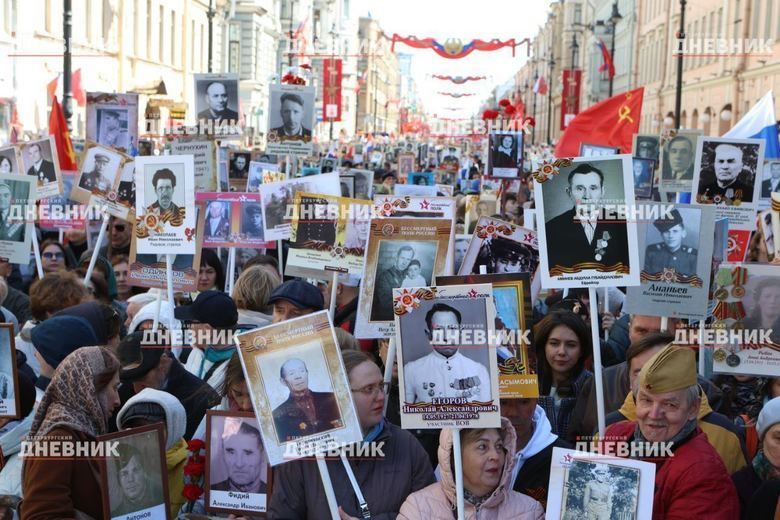 Тысячи петербуржцев приехали в пятницу 9 Мая в центр Северной столицы, чтобы принять участие в торжественном шествии «Бессмертного полка» по Невскому проспекту. Люди скандируют «Ура», «Россия» и хором поют «Катюшу». В мероприятии принимают участие множество горожан, которые пришли почтить память предков.