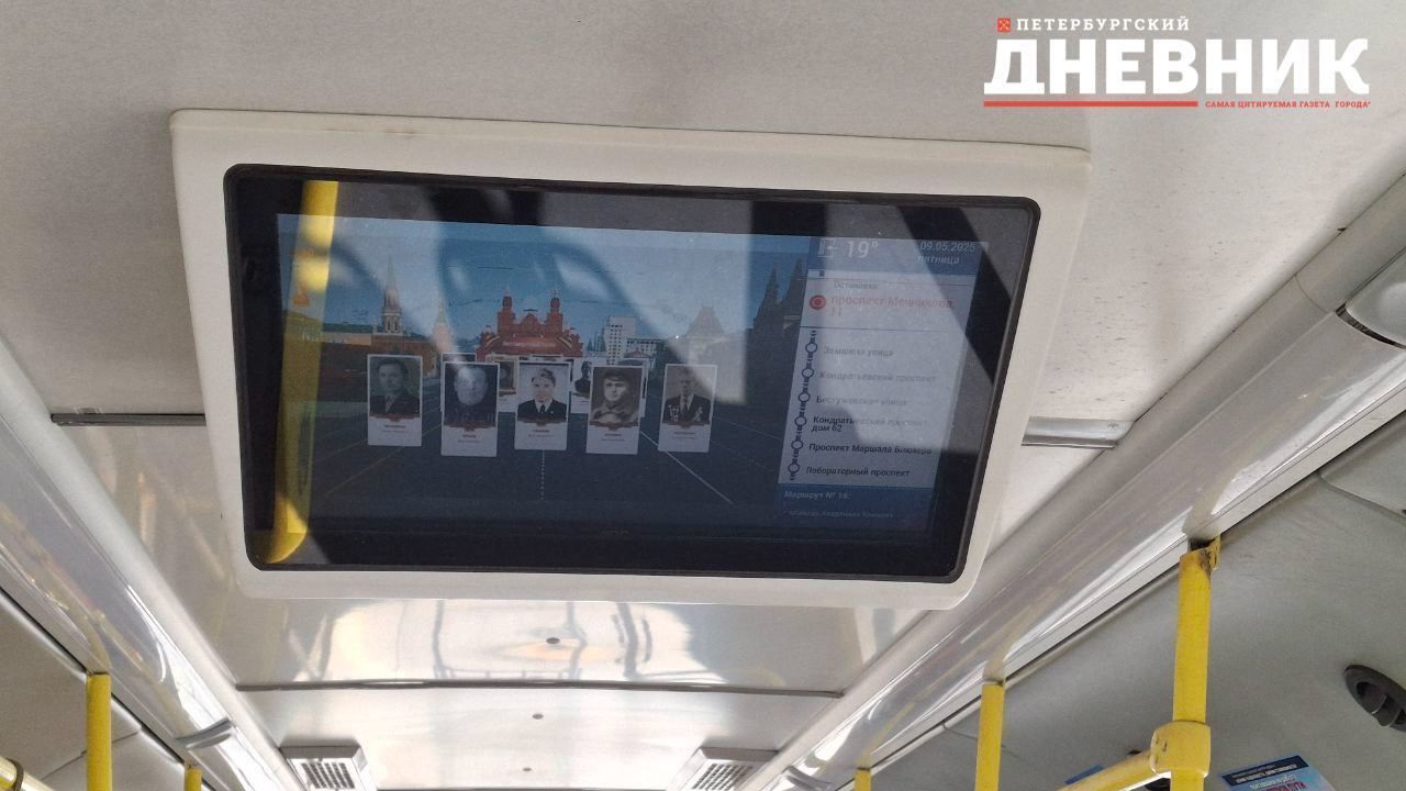 В общественном транспорте Петербурга транслируются портреты героев Великой Победы