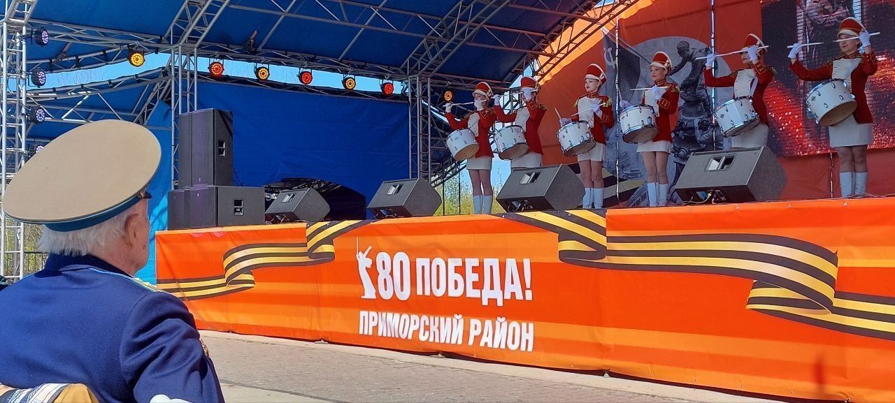 В парке «Озеро Долгое» Приморского района 9 Мая состоялось праздничное мероприятие, посвященное 80-й годовщине Победы в Великой Отечественной войне.