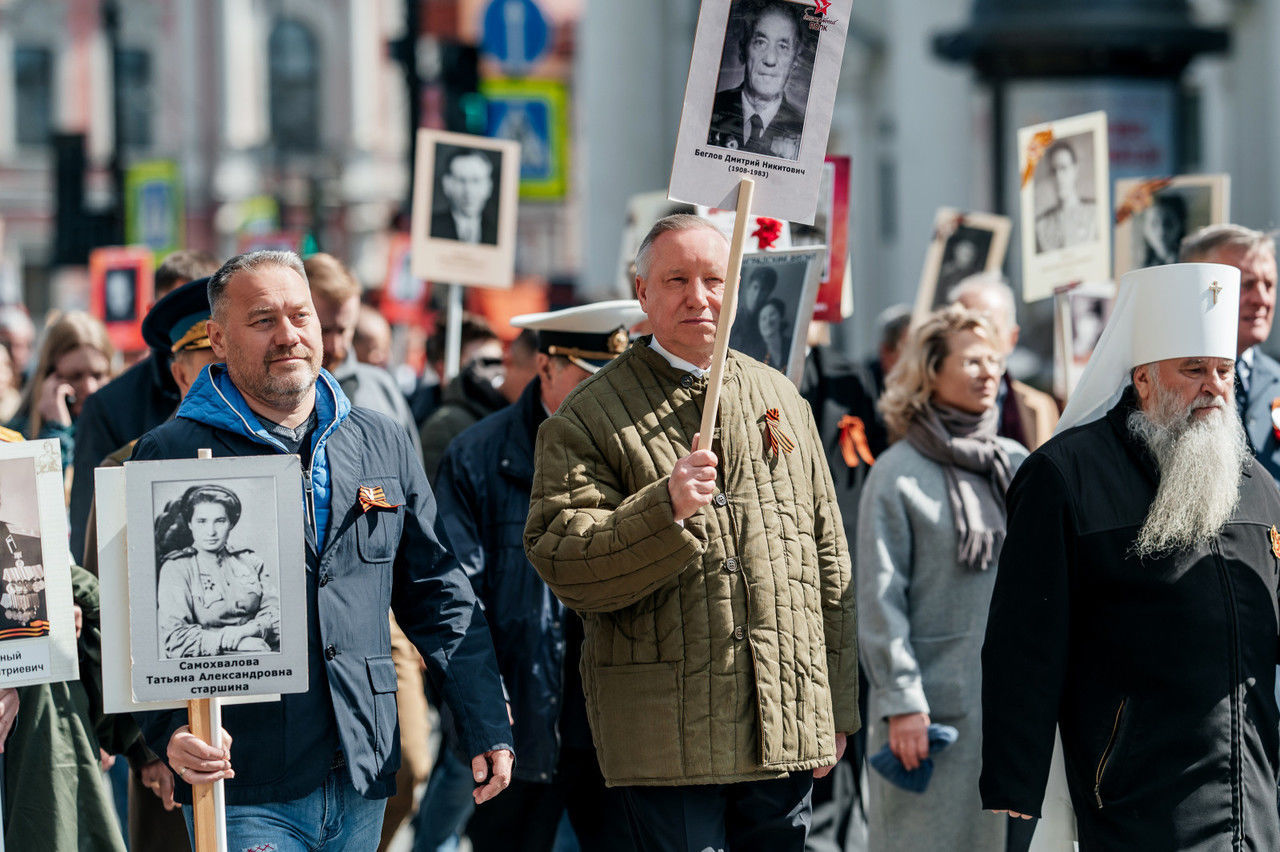 Губернатор участвовал в шествии с портретами отца Дмитрия Никитовича Беглова, прошедшего с боями Халхин-Гол, финскую, Великую Отечественную и Советско-японскую войны, и дяди – Героя Советского Союза Валентина Алексеевича Беглова, погибшего в 1945 году при взятии Бреслау (теперь это польский город Вроцлав).
