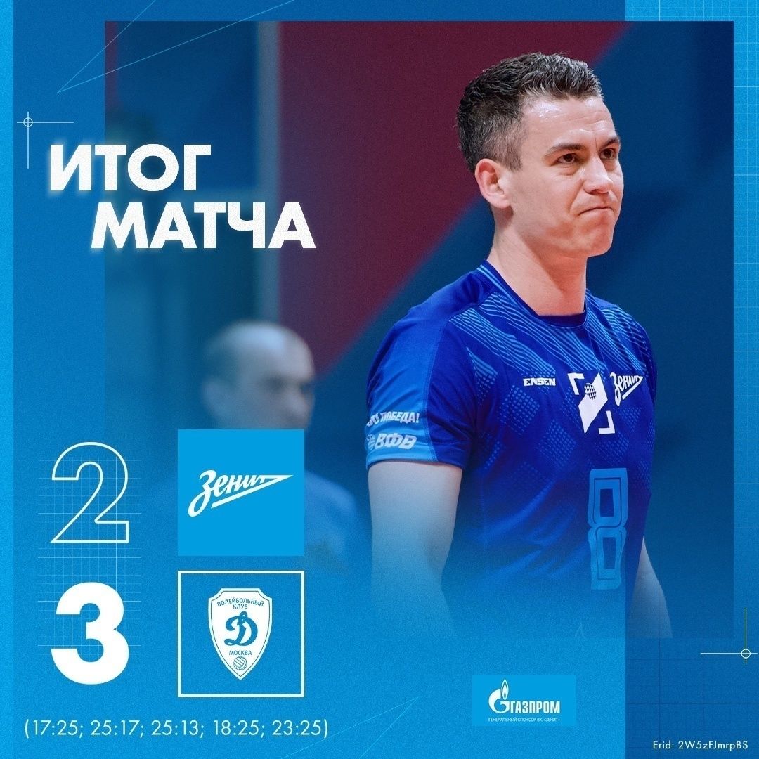 Волейбольный клуб «Зенит» из Петербурга сегодня проиграл в полуфинале Кубка России московскому «Динамо».