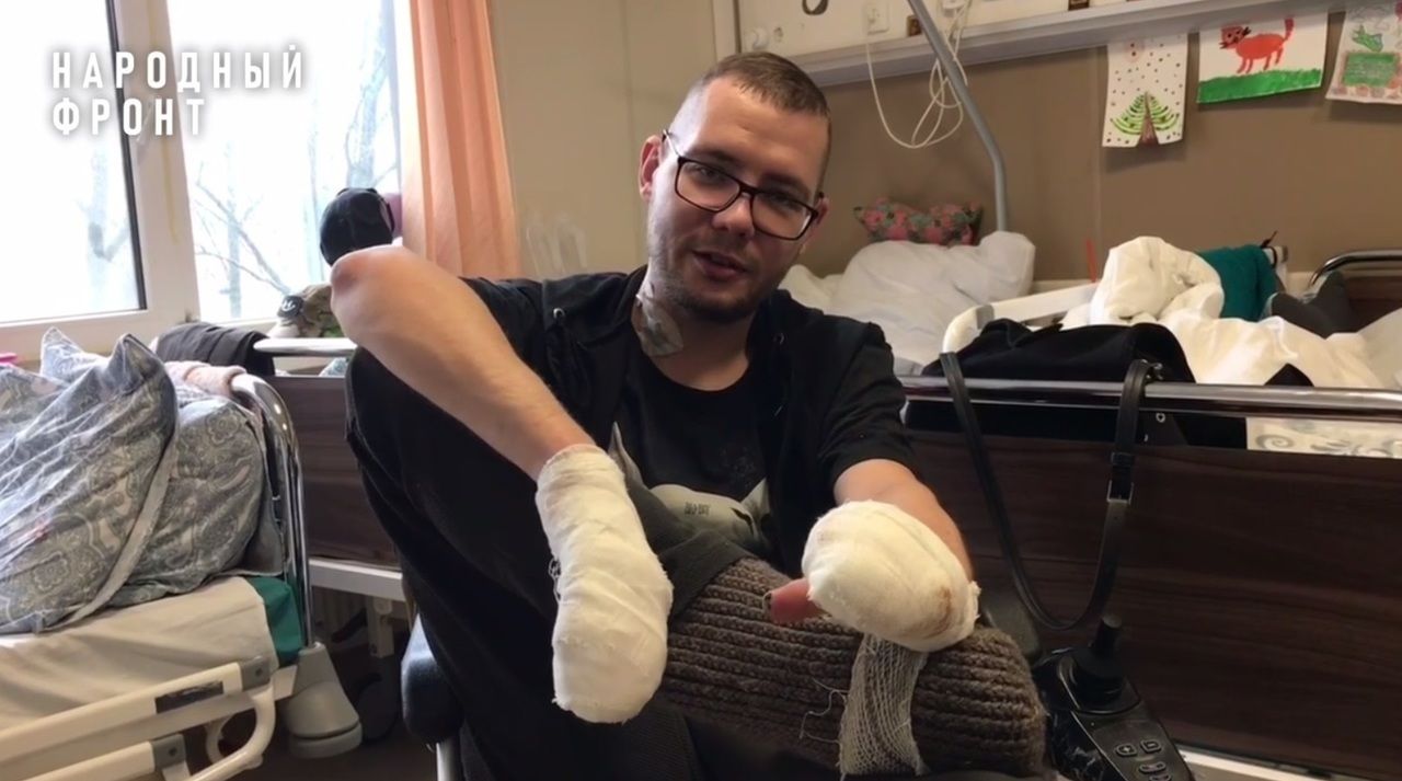 «Во время выполнения боевой задачи боец 15-й гвардейской отдельной дивизии подорвался сразу на двух минах. Тяжёлое ранение, контузия, частичная потеря памяти… Он один выжил из группы. Полторы недели он выбирался к своим – сначала шёл, потом полз. И выжил», – рассказали в «Народном фронте».