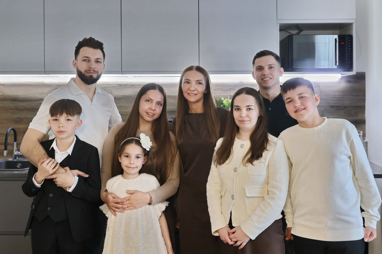 Сейчас многодетная семья живет в большой светлой 4-комнатной квартире, которую купили и подарили родителям, братьям и сестрам старшие дети.