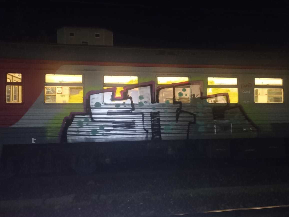В дежурную часть со станции Волховстрой поступило сообщение от прапорщика полиции Александра Соколова о том, что на станции 45 км им задержан злоумышленник, разрисовавший поезд на стоянке: мужчина увидел, как двое молодых людей в балаклавах наносят посторонние рисунки на вагон.