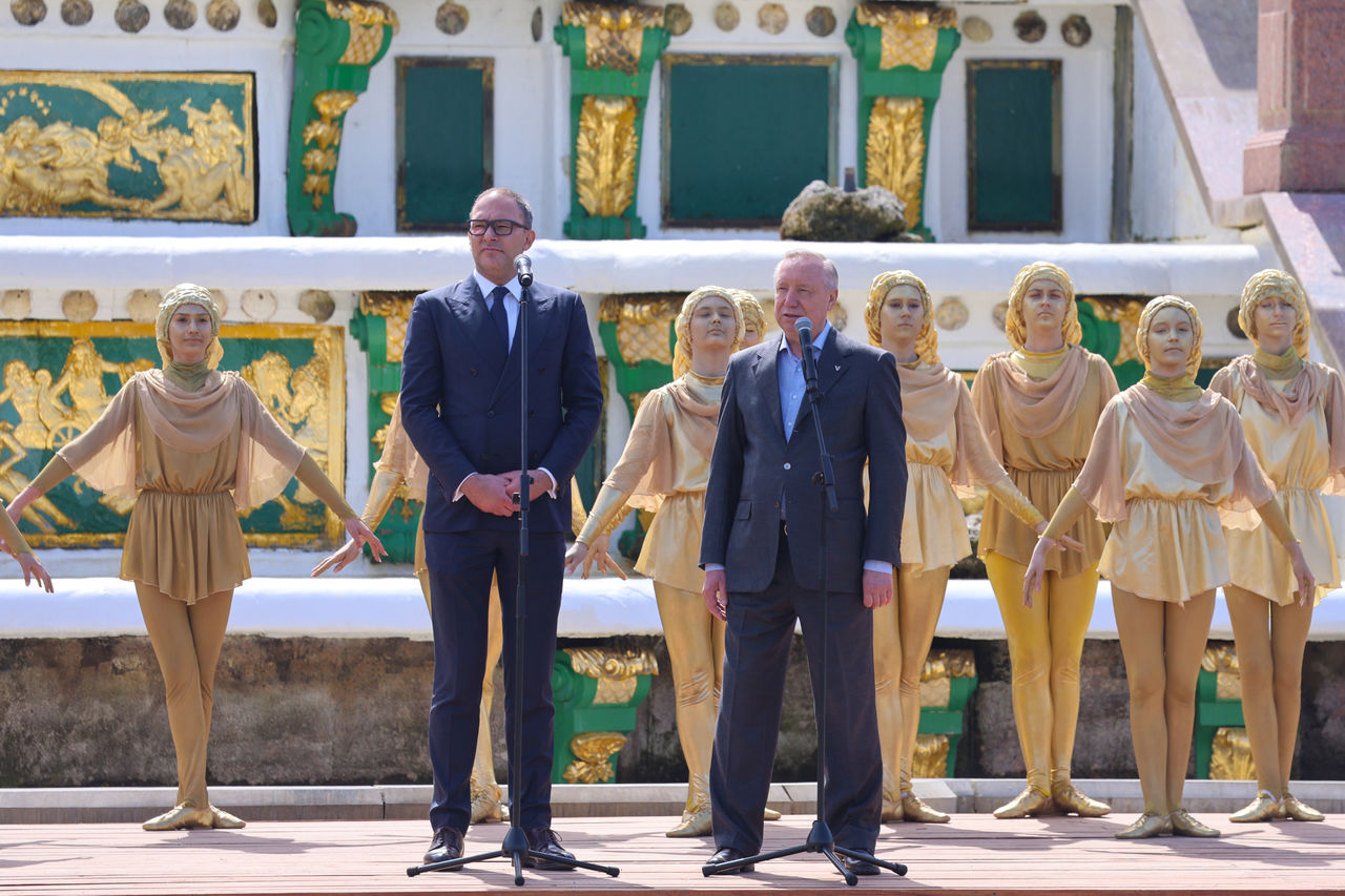 В этом году торжественная церемония открытия сезона фонтанов посвящена скульптурной группе «Самсон, разрывающий пасть льва» и ее возрождению после Великой Отечественной войны.