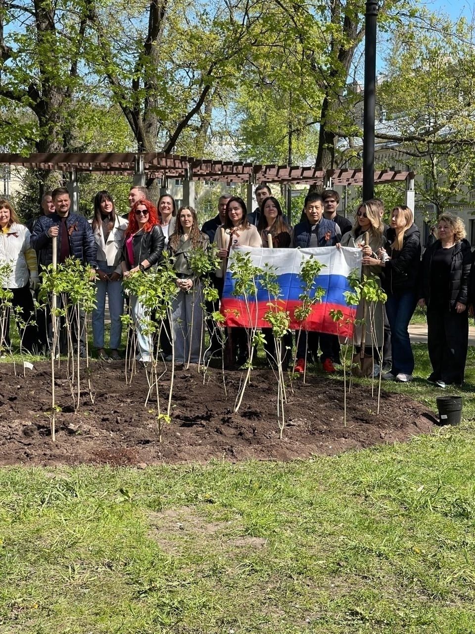 Озеленение города проходит в честь юбилея Великой Победы. Специалисты Калининского садово-паркового хозяйства подготовили участки и необходимый инвентарь и организовали все так, чтобы все могли принять активное участие в благоустройстве парка.
