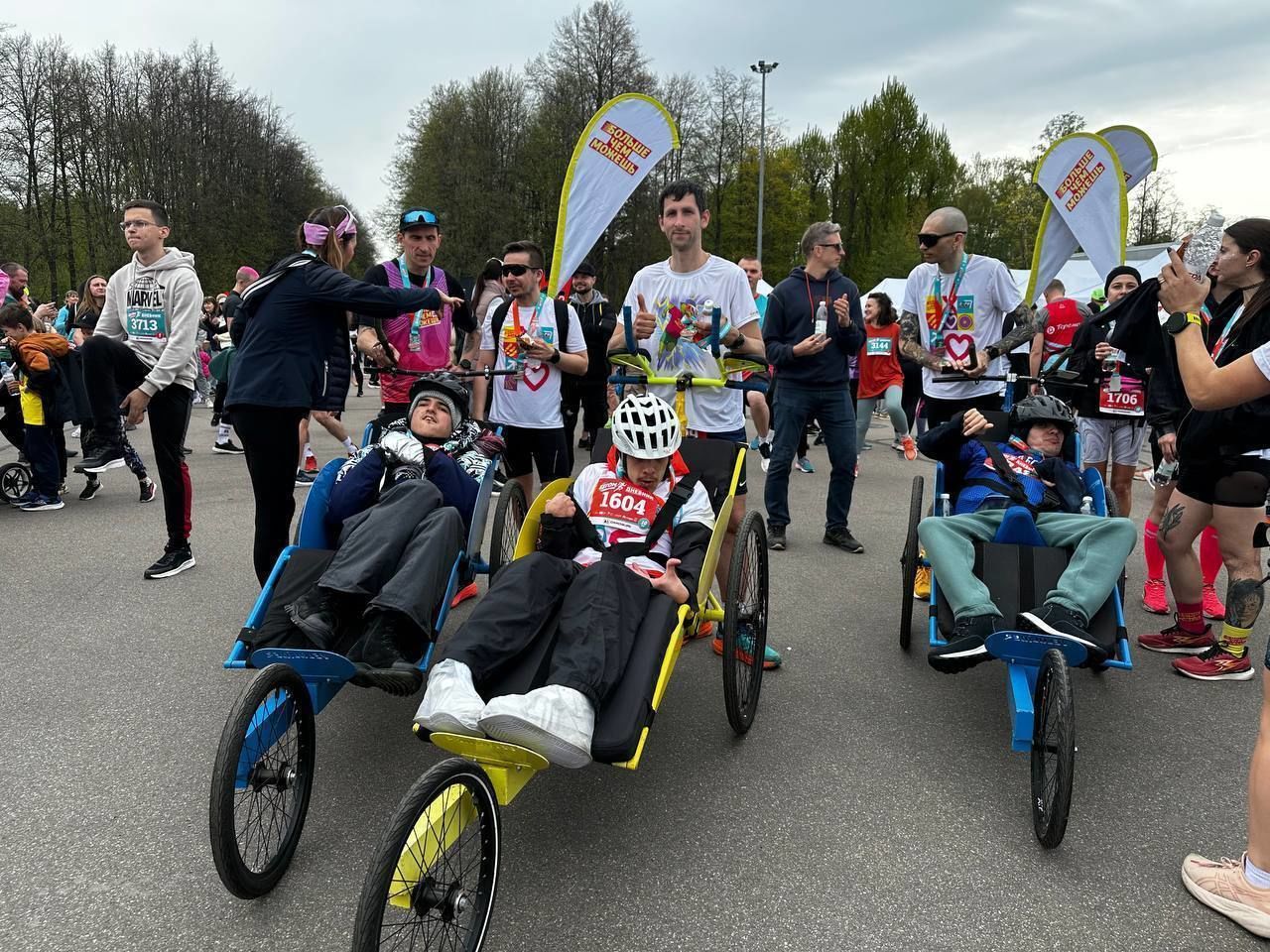 У нас, естественно, проходят тренировки перед участием в забеге. Ребята нарабатывают усидчивость и привычку к погодным условиям, а также умение длительное время находиться в коляске. По температуре нужно учитывать, чтобы подопечным было не жарко и не холодно, но самое главное – это слаженная коммуникация и взаимодействие: кто-то может через некоторое время устать, а иногда нужно дополнительно объяснить что-то.