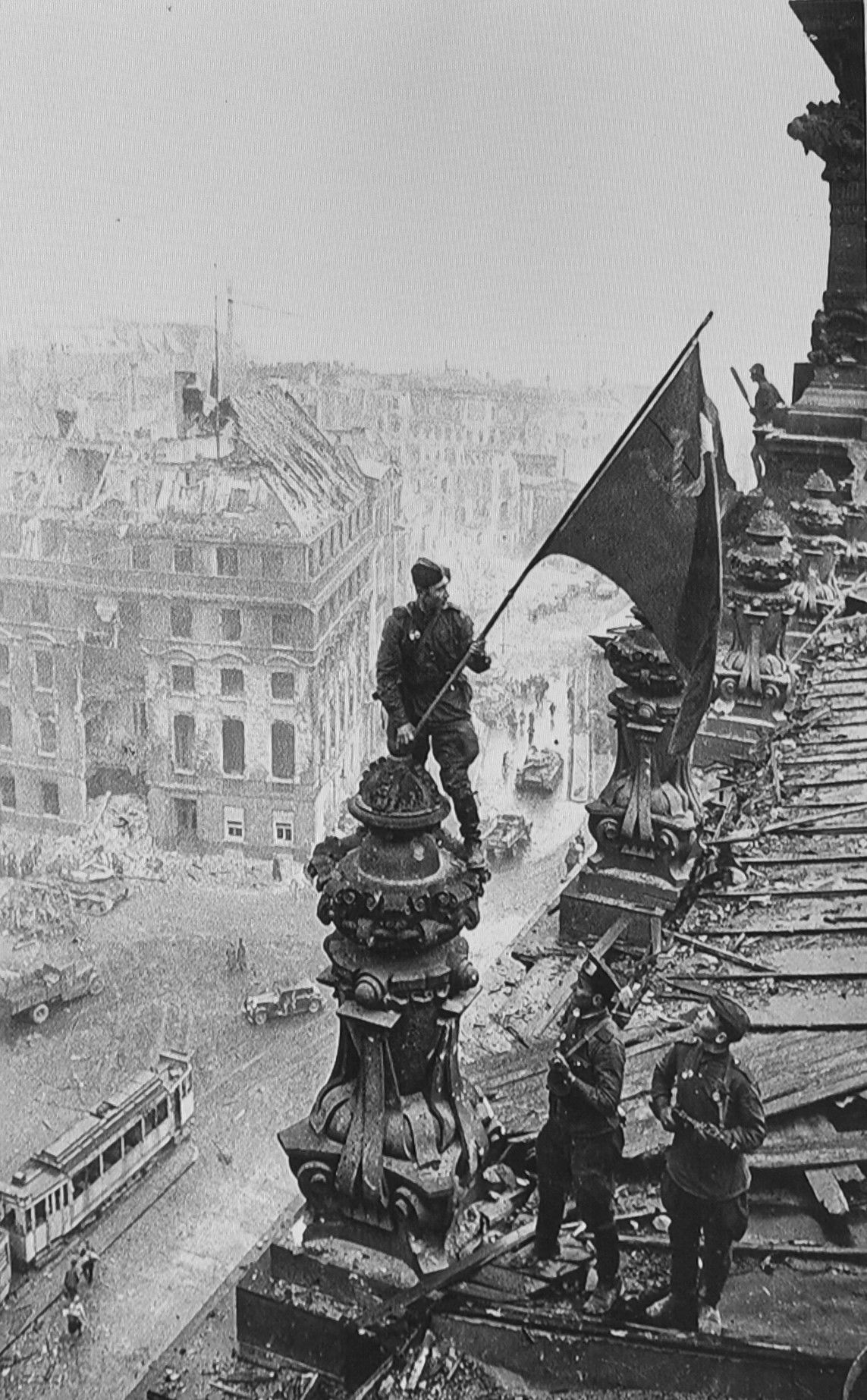 Помимо того рейхстаговского снимка Халдея, тут есть знаменитая фотография Джо Розенталя – он запечатлел, как американский флаг водружают над Иводзимой (тоже в 1945 году). Так эти две фотографии и висят друг напротив друга, иллюстрируя победы на Западе и Востоке.