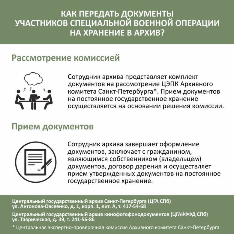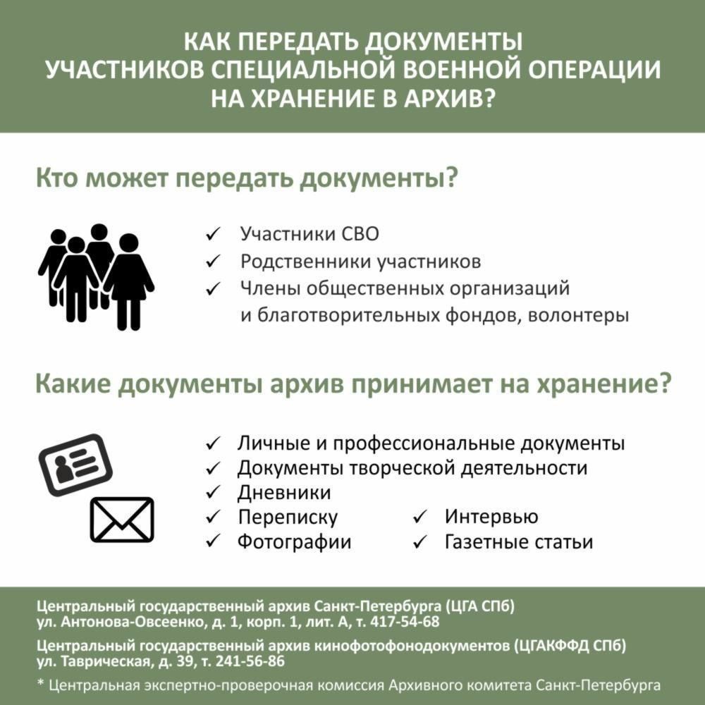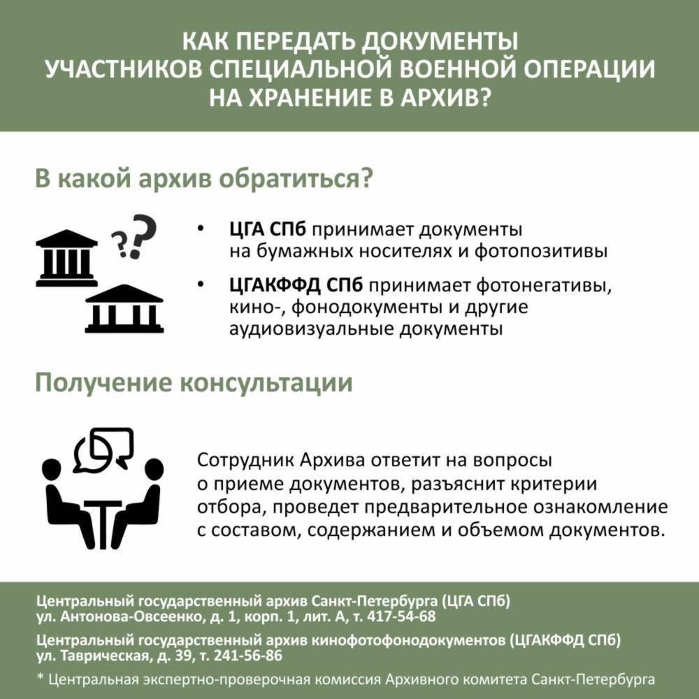 Петербуржцам рассказали, как передать документы участников СВО на хранение в архив