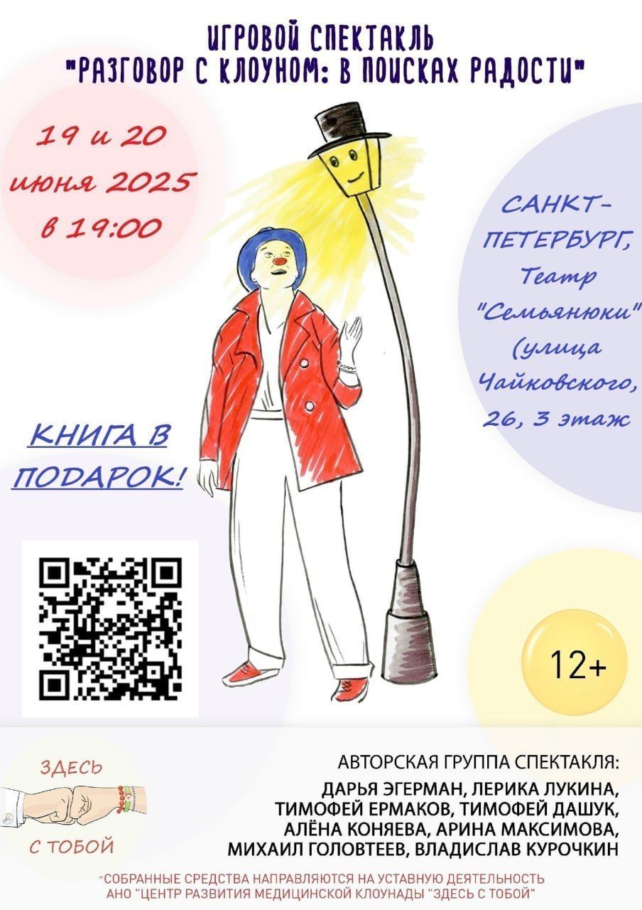 Все собранные средства будут направлены на уставную деятельность АНО «ЗДЕСЬ С ТОБОЙ» – оплату работы клоунов в детских и взрослых стационарах.