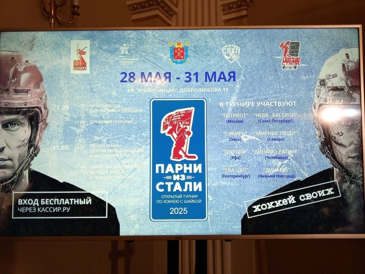 В Петербурге с 26 мая по 1 июня 2025 года в рамках Стальной любительской хоккейной лиги пройдёт третий открытый турнир по хоккею с шайбой на Кубок «Парни из стали». По традиции в нем принимают участие ветераны боевых действий и специальной военной операции. С каждым годом растёт число участников и расширяется география турнира. Так, в этом году в спортивном комплексе «Юбилейный» встретятся восемь команд из разных регионов России: Москвы, Санкт-Петербурга, Омска, Самары, Уфы, Челябинска, Екатеринбурга и Нижнего Новгорода.