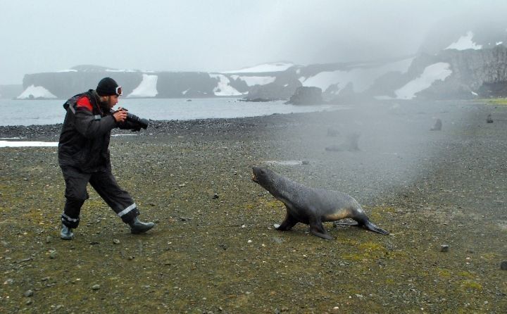 – Знаете, пингвины очень любопытные. И совершенно не боятся человека. Поэтому они первыми подходят, пытаются как-то идентифицировать человека, понять, что это такое. Большинство быстро теряют интерес и отходят, но некоторые проявляют особый энтузиазм. Скорее всего, они принимают меня за своего собрата-пингвина – подходят, смотрят, пытаются понять, что это за оборудование у меня в руках.
