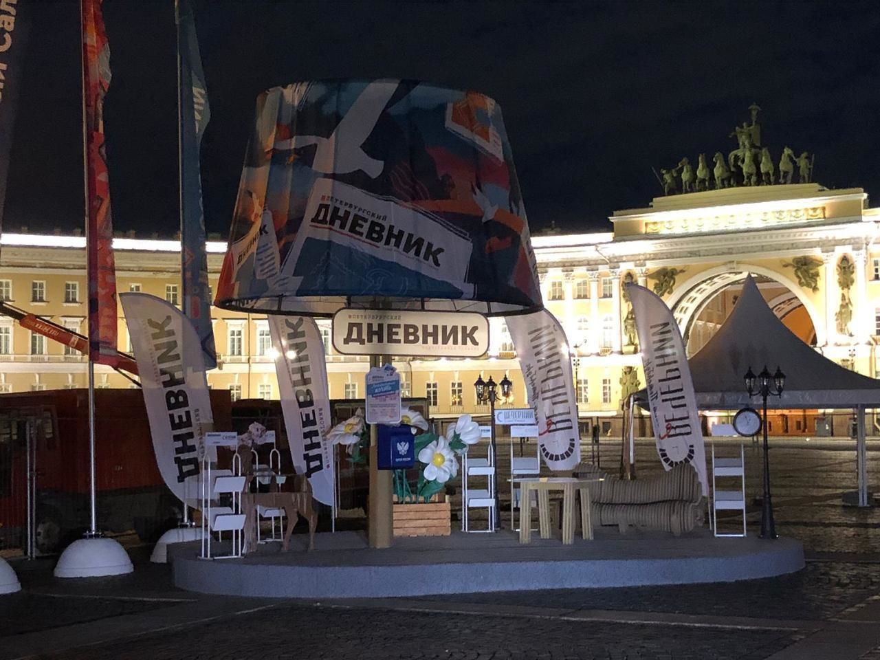 Важно отметить, что пространство «Литературной почты» «Петербургского дневника» в этом году выполнено в обновленном дизайне: на гигантском абажуре изображены знаковые символы Петербурга – Медный всадник, разводной Дворцовый мост и купол Исаакиевского собора. Рядом можно будет увидеть почтовый ящик, а также фотозону и зону отдыха, где жители и гости города с удобством и комфортом смогут заполнить открытки. Высота абажура составит почти шесть метров, при этом площадь всего общественного пространства – семь на пять метров.