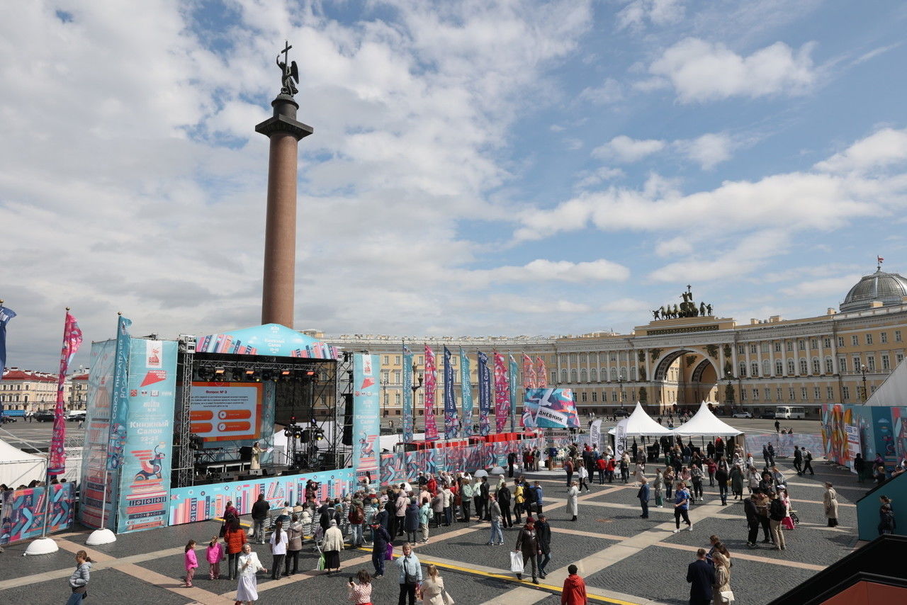 Юбилейный XX Санкт-Петербургский международный Книжный салон идет с 22 по 25 мая на Дворцовой площади. Основными темами 2025 года стали 80-летие Победы в Великой Отечественной войне и Год защитника Отечества.