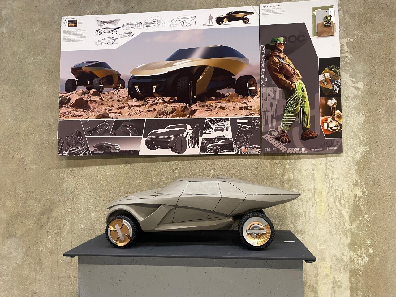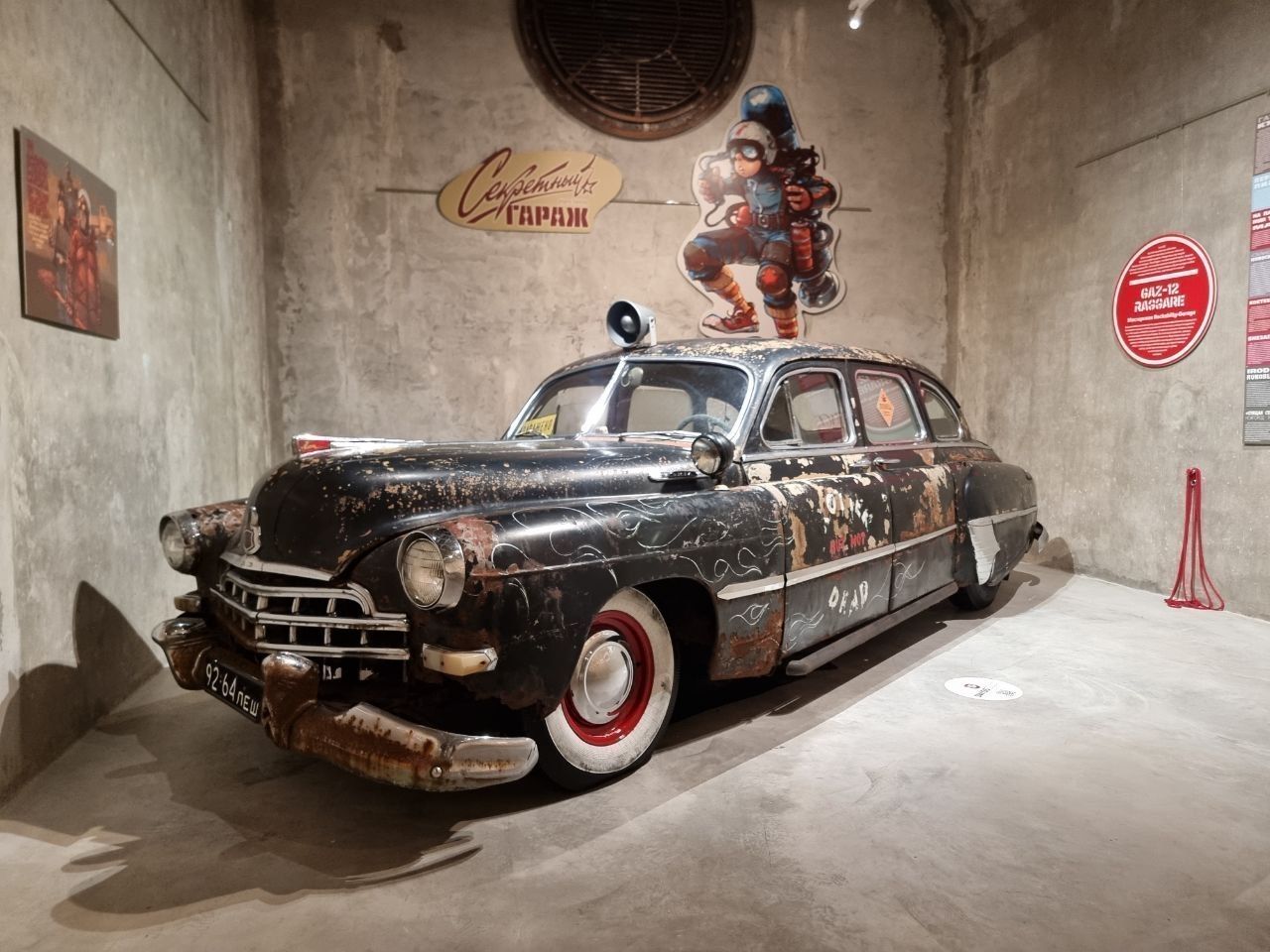 В основе экспозиции «Секретного гаража» – рисунки художника и промышленного дизайнера Андрея Ткаченко, который создал фантастическую автомобильную техно-вселенную и населил ее всевозможными роботами и смешными персонажами.