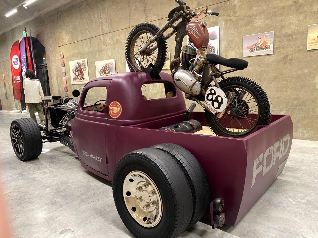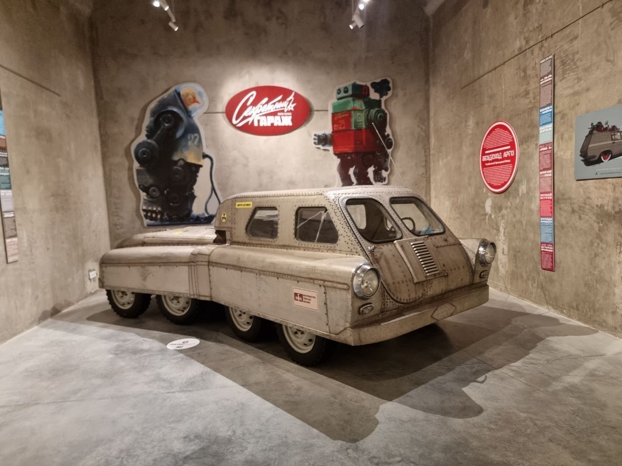 «Среди фантазийных автомобилей здесь присутствует один – вездеход «Арго». Это реальная разработка советского времени, сделанная в совершенно фантастических условиях советского времени. В 60-е годы сотрудники, начиная с главного конструктора одного секретного предприятия, которое, к слову, занималось подводными лодками, открыли некий мужской гаражный клуб. Каждые выходные они там собирали машины своей мечты. В этом вездеходе много технических достижений и новшеств. Например, тут нет рулевого управления, блокируются колеса, она складывается вдвое, нет двигателя, а я единственный, кто может им управлять», – говорит Илья Сорокин.