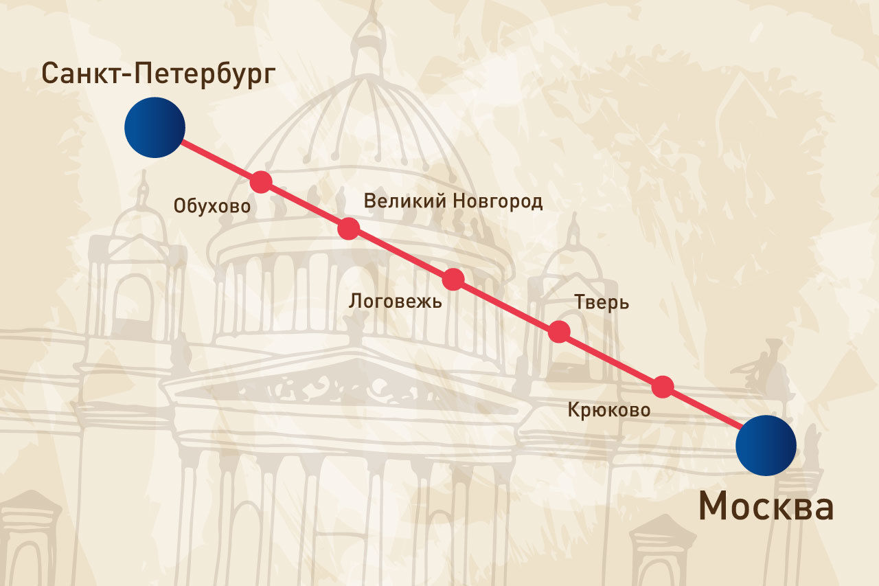 ВСМ Москва – Санкт-Петербург пройдет по территории шести регионов. Дорога между столицами займет 2 часа 15 минут. Поезда будут ходить с интервалом в 15 минут. Ввести магистраль в эксплуатацию планируется в 2028 году.