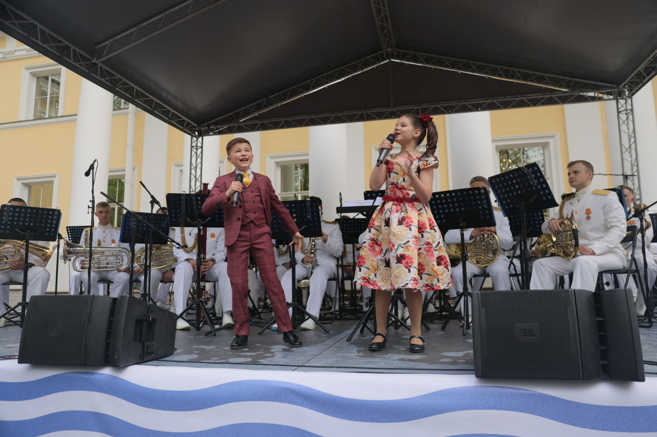 Сегодня в парке Каменноостровского дворца (Академии талантов) состоялся концерт «Флот и дети». В мероприятии принял участие Адмиралтейский оркестр Ленинградской военно-морской базы вместе с ведущими вокально-эстрадными и хоровыми детскими коллективами Санкт-Петербурга.