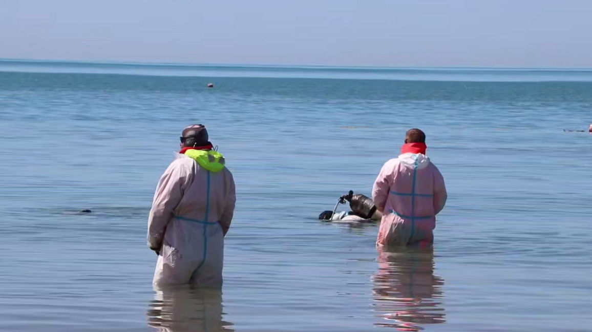 Как сообщили в оперативном штабе Краснодарского края, за последние сутки со дна моря в Анапе подняли 88 мешков с мазутом. 23 мая работы проводились в районе устья реки Можепсин. Водолазы совершили 166 спусков.