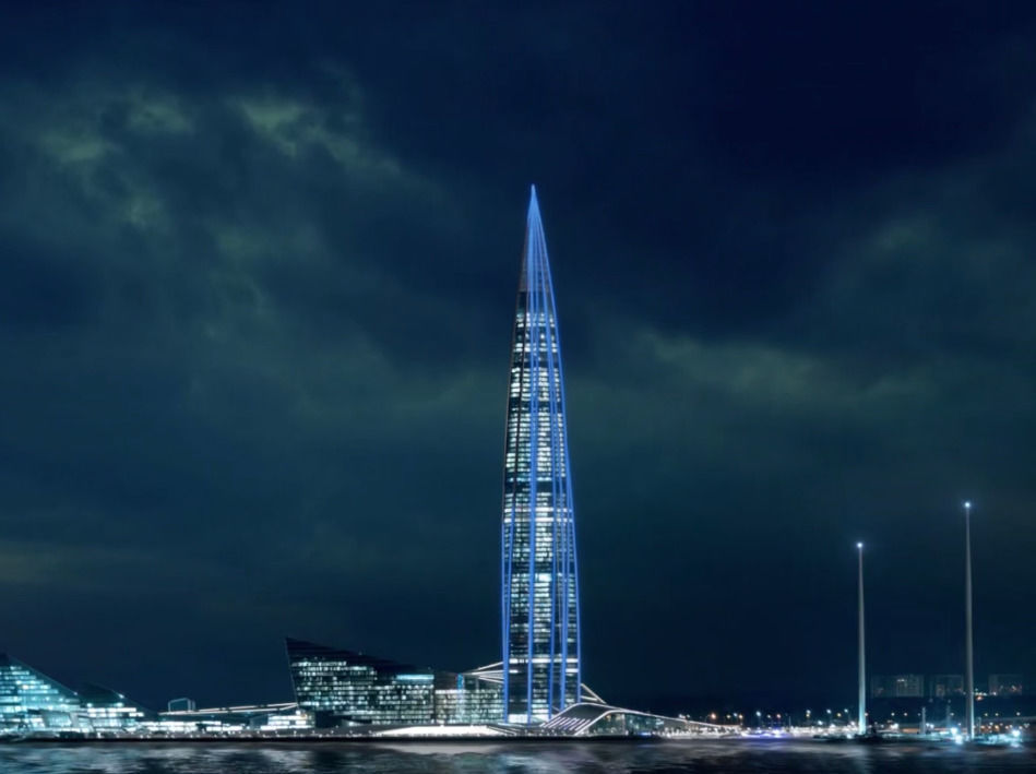 В честь 100-летия «Зенита» по вечерам на здании «Лахта Центра» сияет сине-бело-голубая подсветка