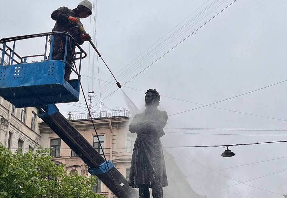 В Санкт-Петербурге накануне Дня города художники-реставраторы Государственного музея городской скульптуры продолжают проводить очистку петербургских памятников. Среди них памятники знаменитым поэтам Александру Пушкину и Владимиру Маяковскому, сообщается в телеграм-канале учреждения.