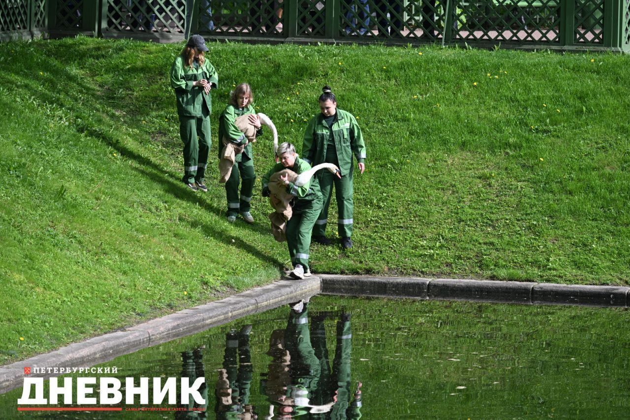 В Летнем саду началось лето. Событие ознаменовалось возвращением на свое законное место двух его почетных обитателей – лебедей Елисея и Любавы. Зиму они традиционно проводят в Ленинградском зоопарке, а лето – в Карпиевом пруду.
