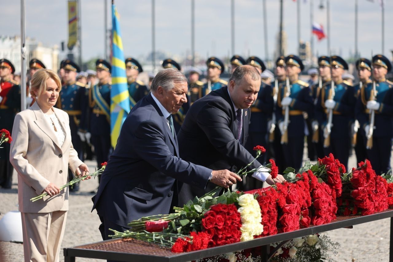 На Сенатской площади торжественно возложили цветы к памятнику Петру I