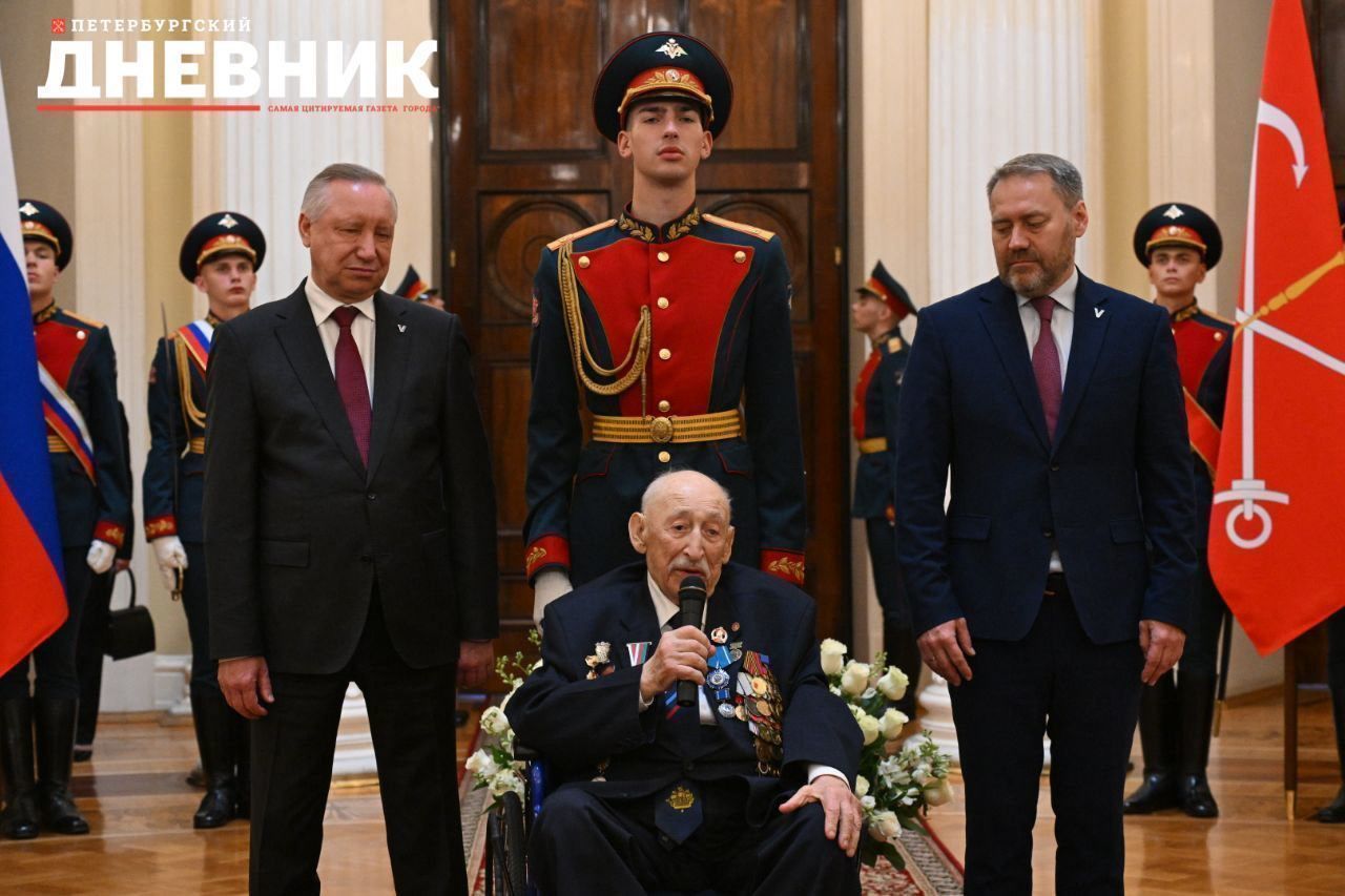 В Год защитника Отечества почетными гражданами Петербурга стали ветераны, участники и свидетели героической эпохи Великой Отечественной войны. Такой выбор депутаты ЗакСа сделали еще в прошлую среду. А в День города, по традиции, всем троим новым почетным гражданам в Ротонде Мариинского дворца вручили знаки отличия, дипломы и удостоверения.