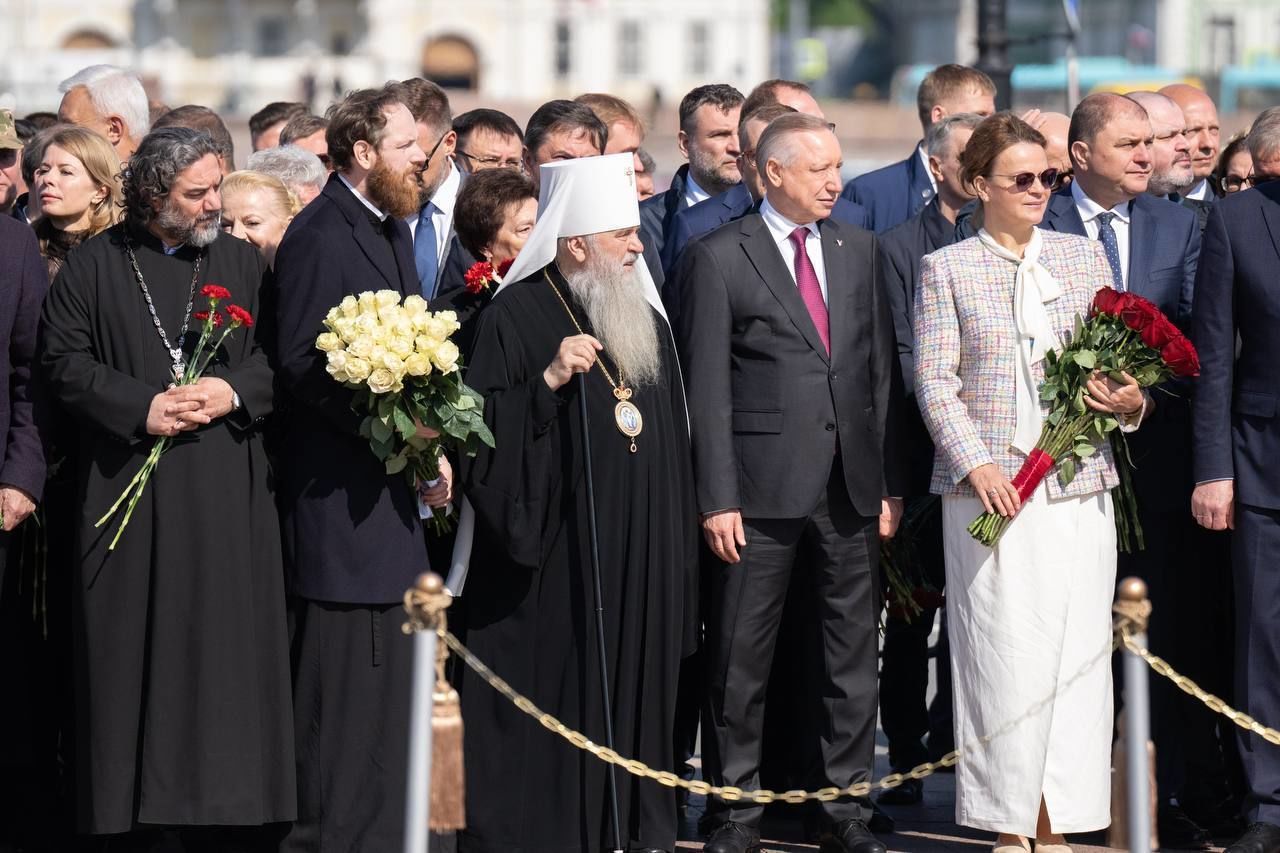 В День города в Санкт-Петербурге состоялись торжественные церемонии возложения цветов к могиле Петра Первого в Петропавловской крепости и к памятнику основателю города на Сенатской площади.