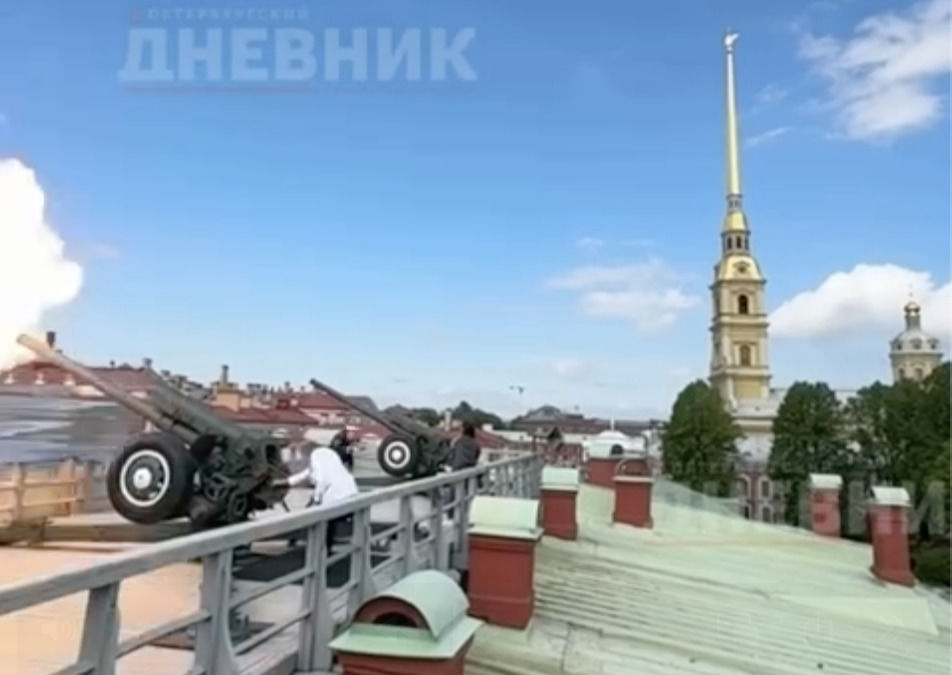 Прозвучал полуденный выстрел с Нарышкина бастиона Петропавловской крепости: почётное право дать залп предоставили председателю Общественной палаты Санкт‑Петербурга Ирине Соколовой и генеральному директору Российской национальной библиотеки Денису Цыпкину.