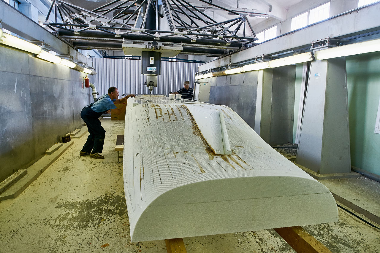 Модели достаточно утилитарны, что отличает их от экспонатов в музеях. Но каждая – произведение технического искусства, над которым работали опытные мастера центра самой высокой квалификации. Сначала изготавливается деревянный каркас. Потом он обшивается пенопластом и обрабатывается. Обводы должны практически идеально повторять то, что предоставили на чертежах разработчики судна. Допустимая погрешность – 0,1 мм! В противном случае ни о какой высокой достоверности результатов испытаний говорить не приходится. Готовая модель красится, в неё устанавливается оборудование. После того она готова к испытаниям.