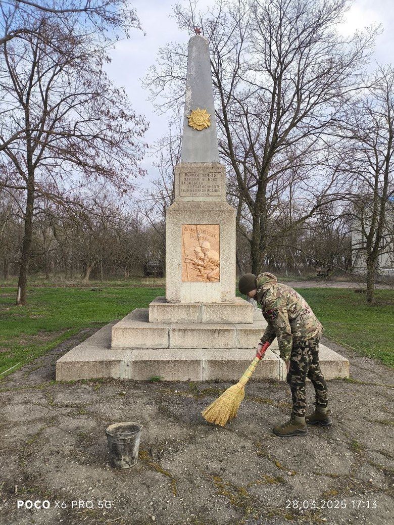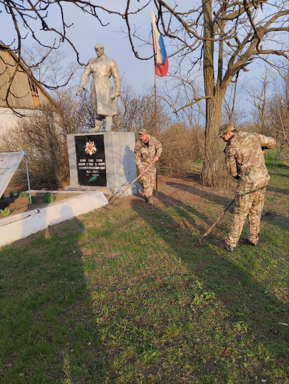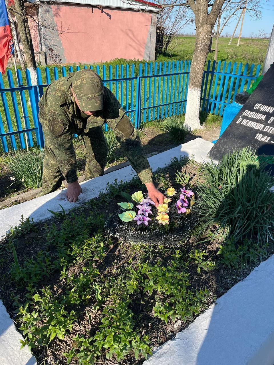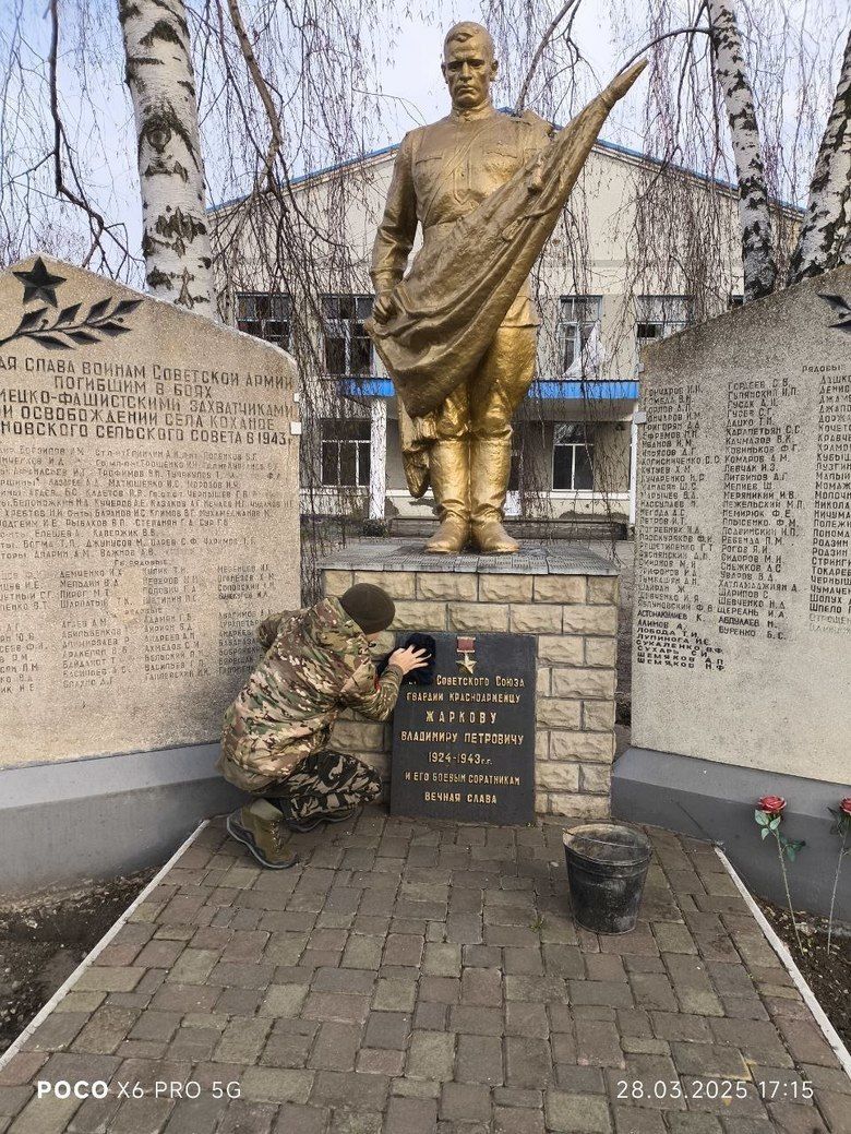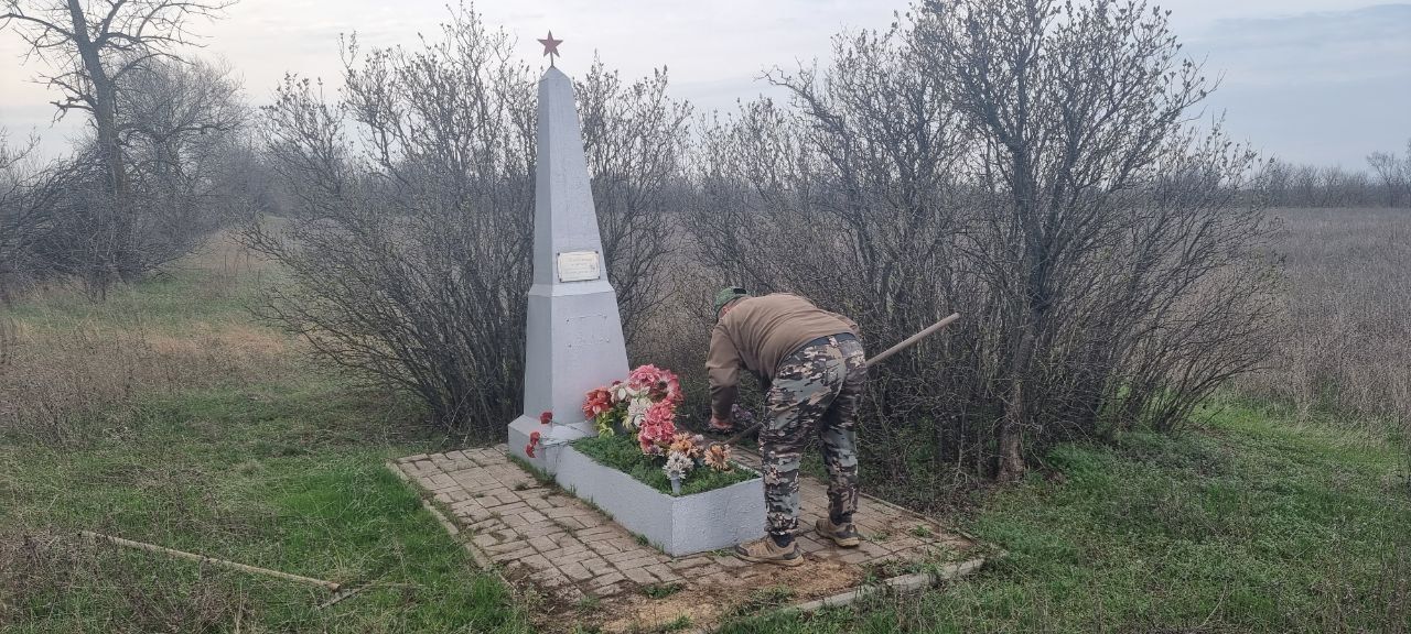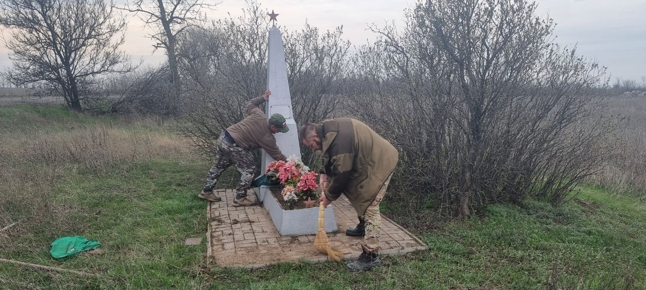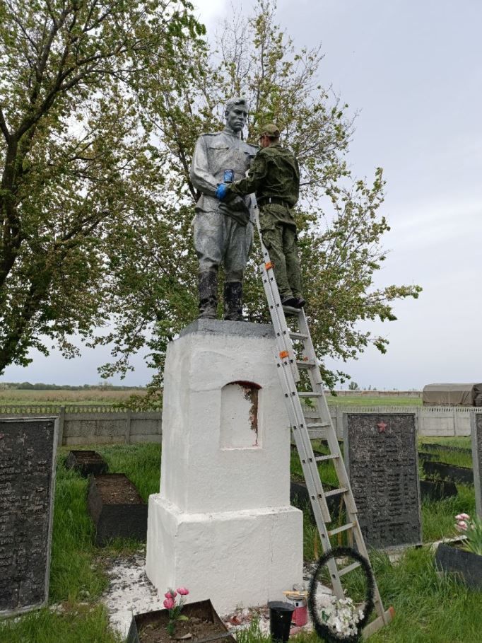 Российские бойцы восстанавливают памятники героям Великой Отечественной войны на освобожденных территориях