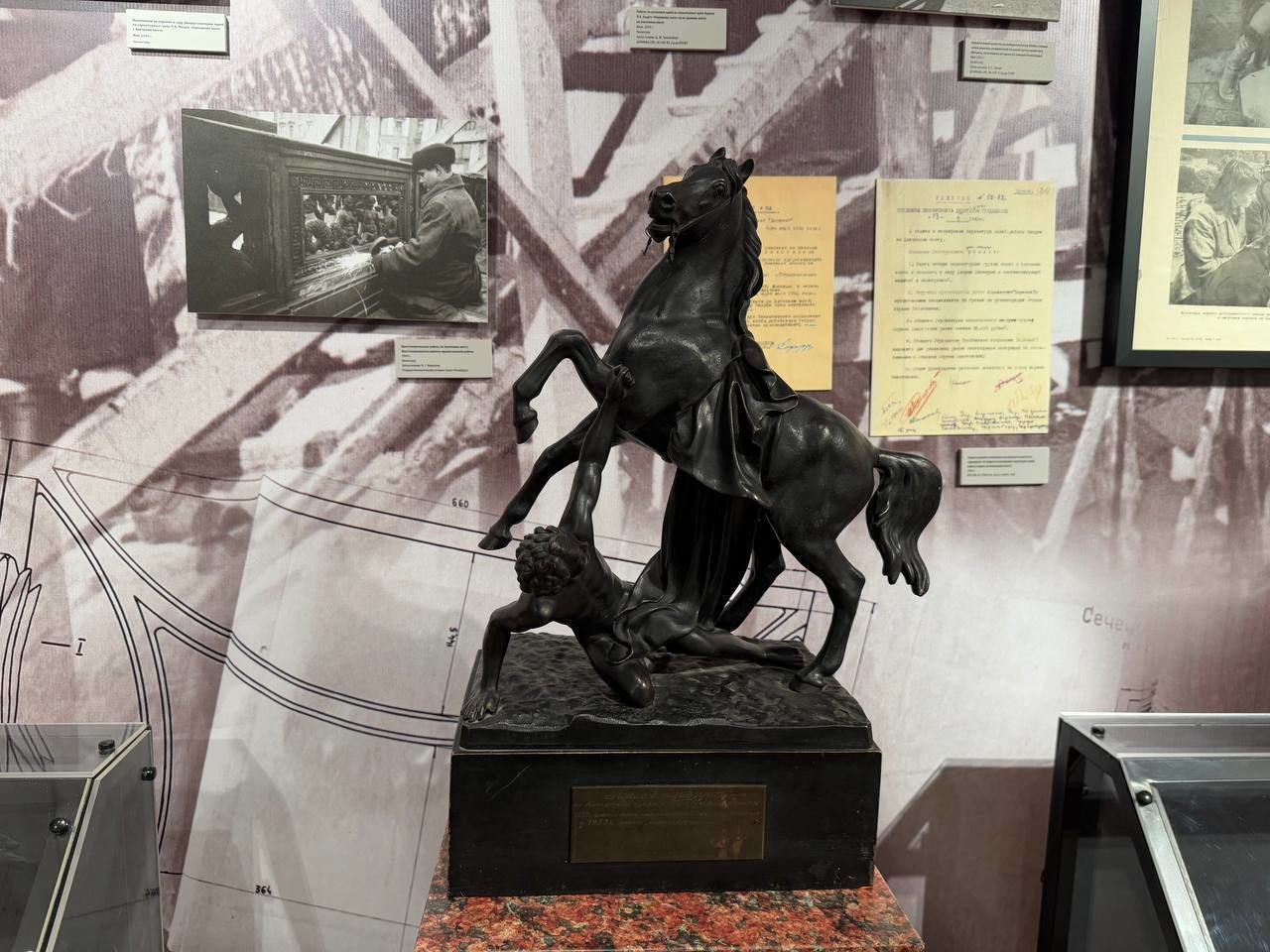 От взрывов нещадно страдали набережные города и перильные ограждения. Их временно меняли на деревянные настилы, а капитальное восстановление происходило уже после боевых действий. На выставке представлен чертеж 1945 года по реконструкции береговых линий Мойки и Фонтанки. И подлинный свидетель разрушений – заржавевшее ограждение, в которое попал немецкий снаряд. В городе протяжённость набережных превышает 160 километров, примерно половина из них оборудована ограждениями, при этом около двух третей перил были повреждены.