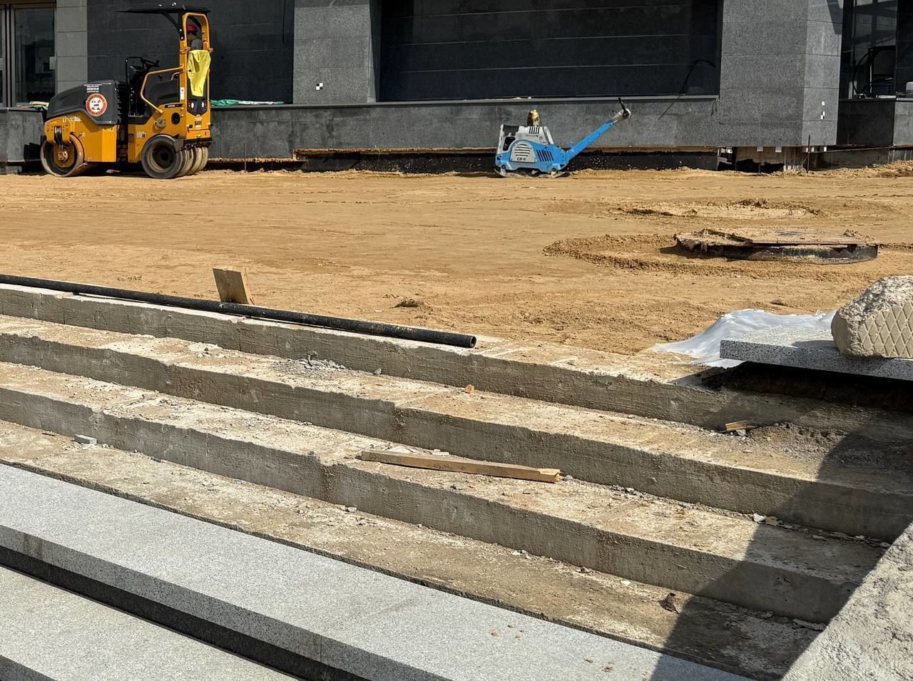 «Идёт песчаная подготовка для мощения площади перед вестибюлем плитами из натурального камня, – говорится в сообщении. – Также идёт облицовка гранитными плитами ступеней лестницы, по которой пассажиры будут подниматься к вестибюлю».