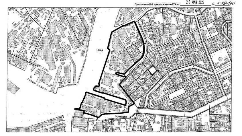 Участок площадью 51,5 га находится в пределах рек Пряжки, Большой Невки, Мойки и Фонтанки, а также набережной реки Пряжки и Лоцманской улицы.